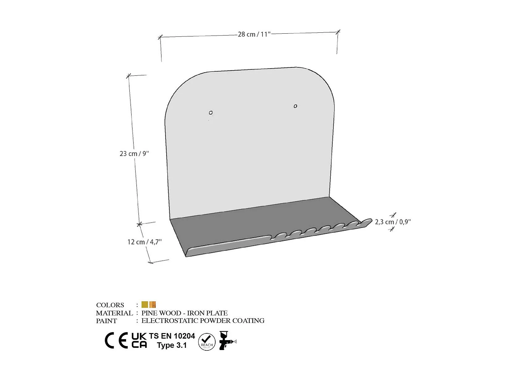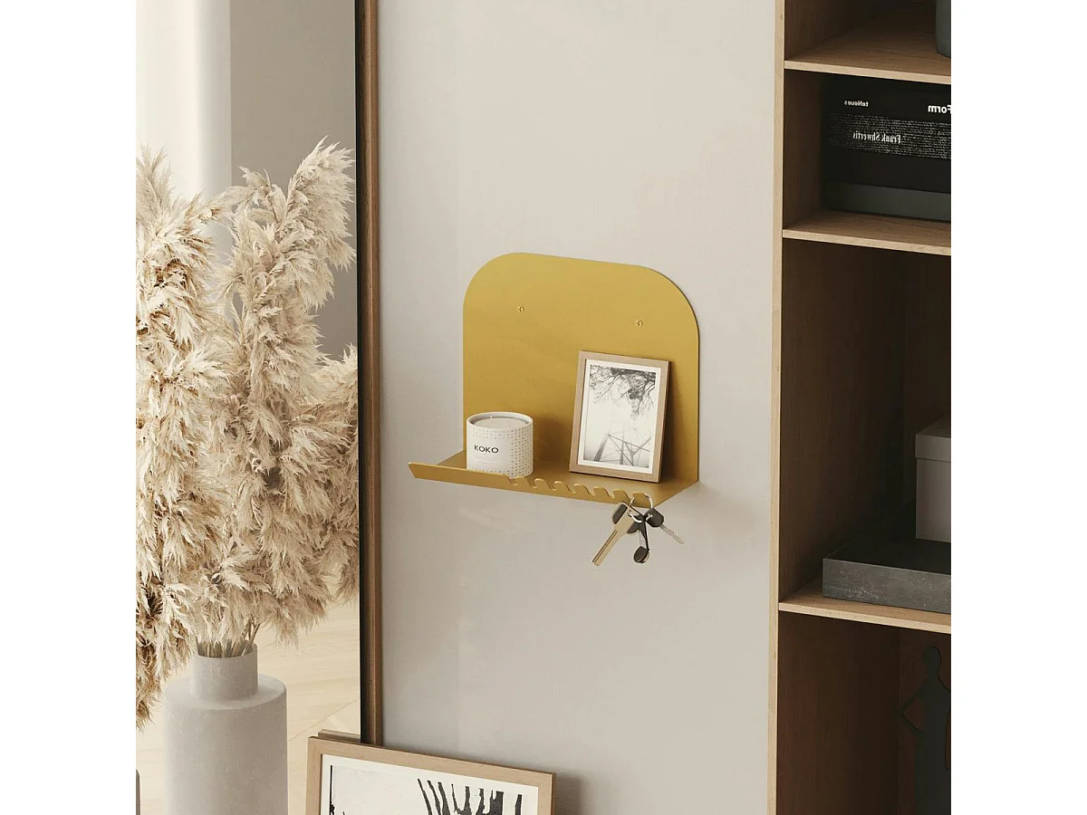 Etagère murale métal doré avec crochets dentelés 28 cm SFAX