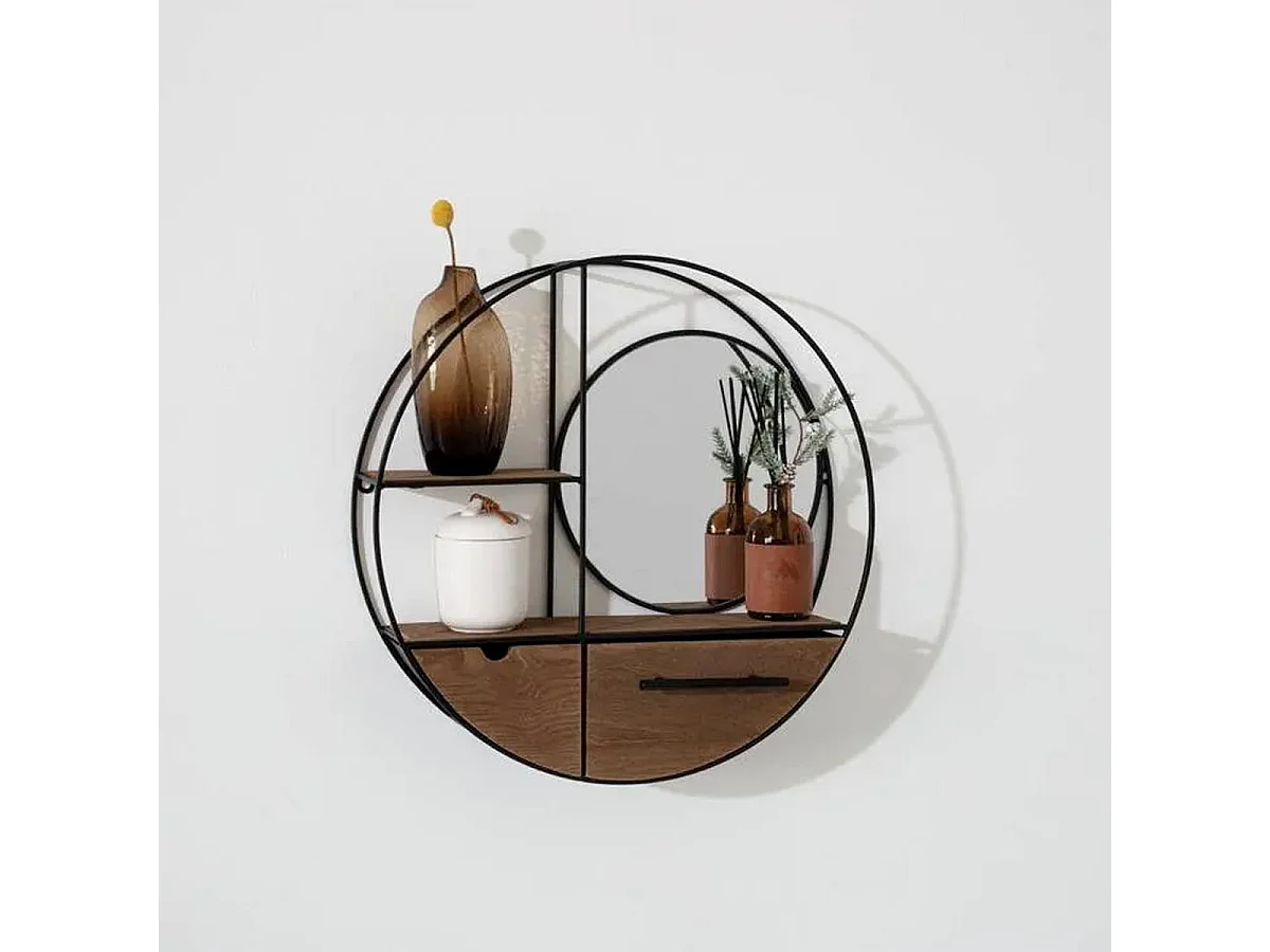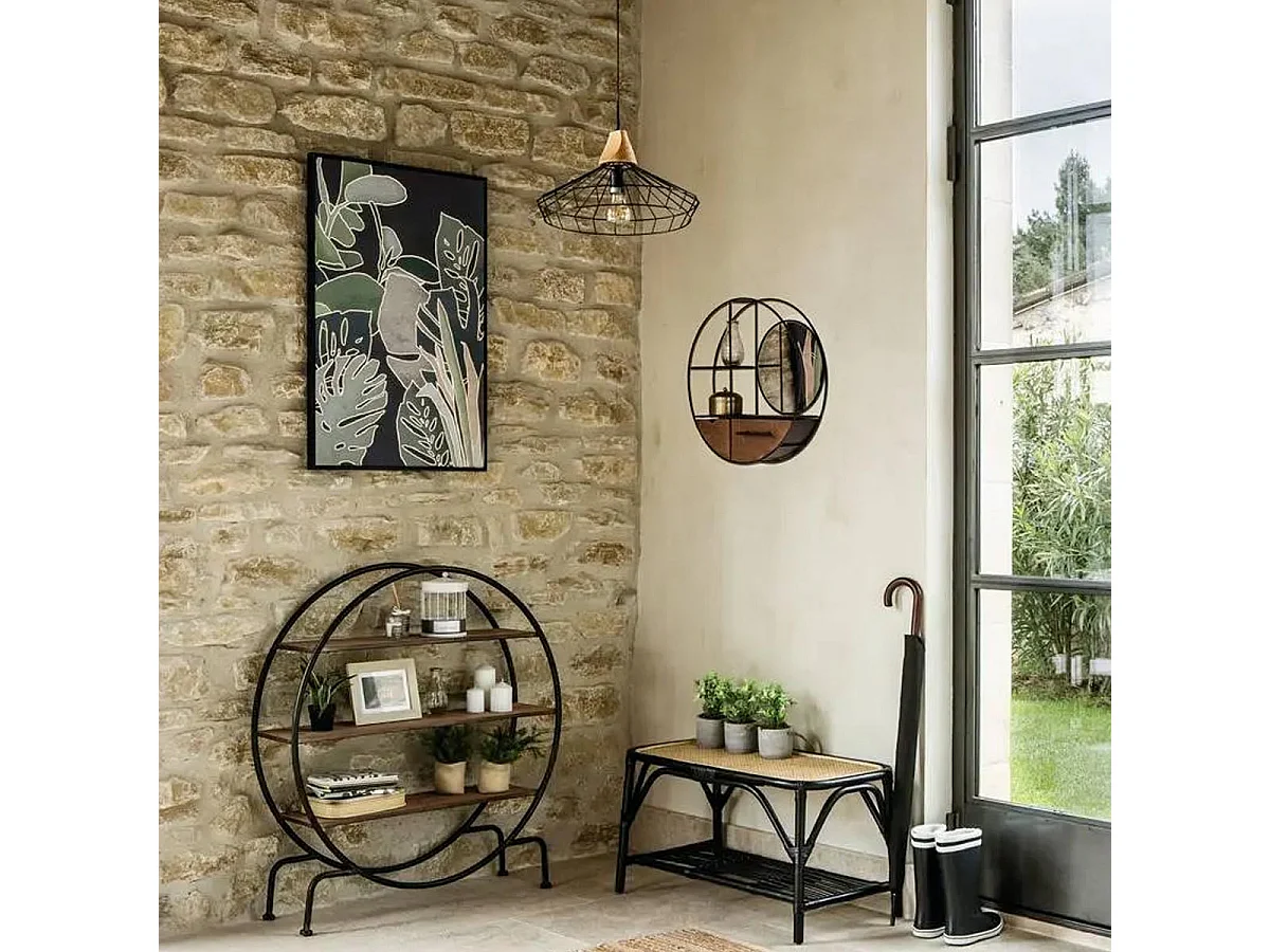Étagère Murale 2 Tiroirs "Reto" 50cm Naturel & Noir