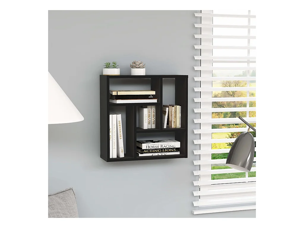 Étagère cube murale 5 compartiments noir bois d'ingénierie