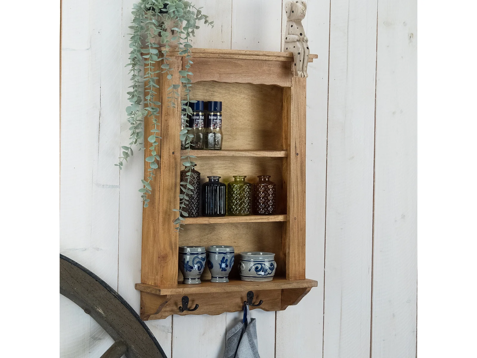 ÉTAGÈRE MURALE Cottage Bois de mahogany, 3 crochets, couleurs naturelles