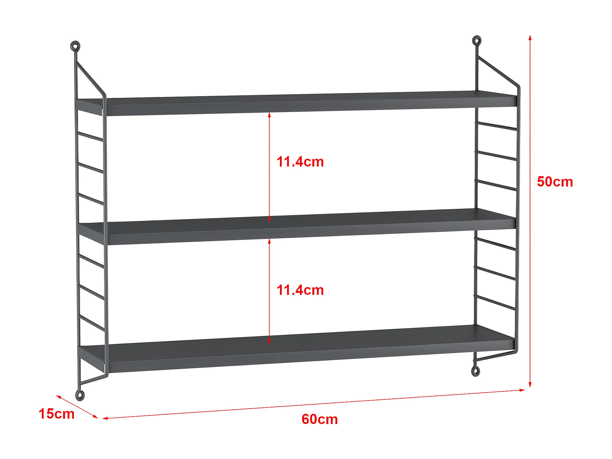 Étagère murale Strängnäs à 3 niveaux 50 x 60 x 15 cm Gris foncé [en.casa]