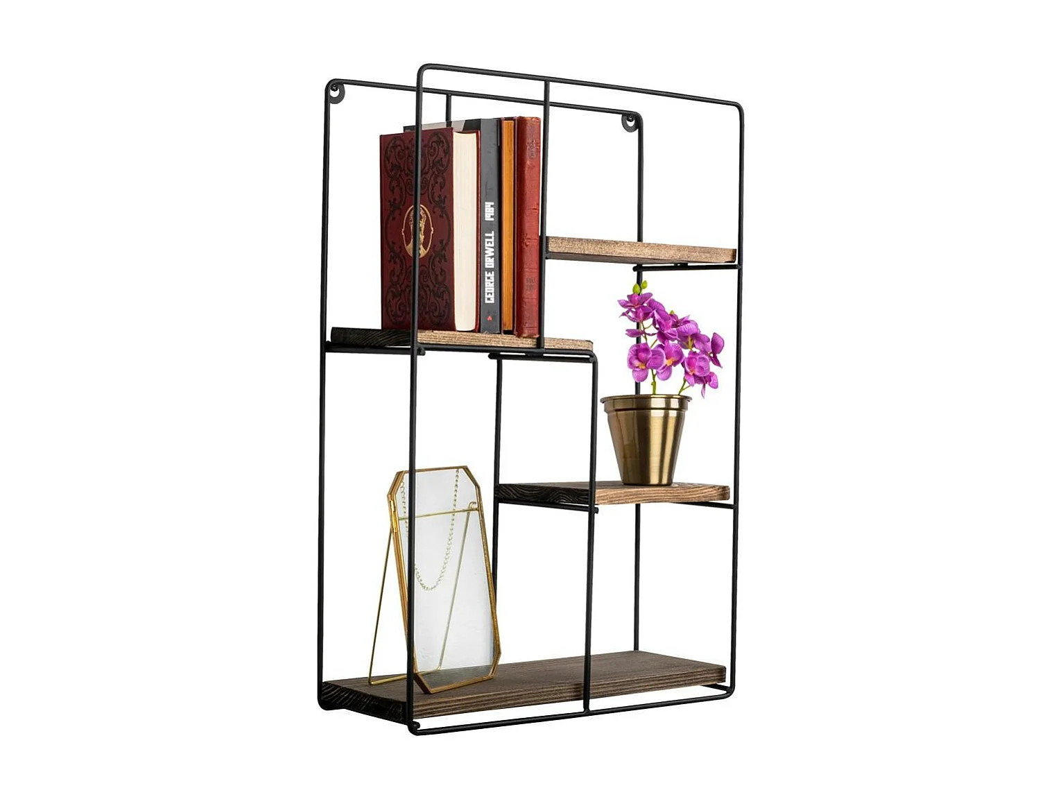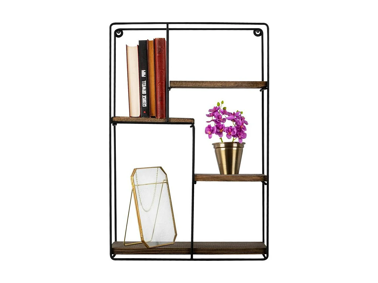 Etagère décorative noire losange décor bois foncé JENA
