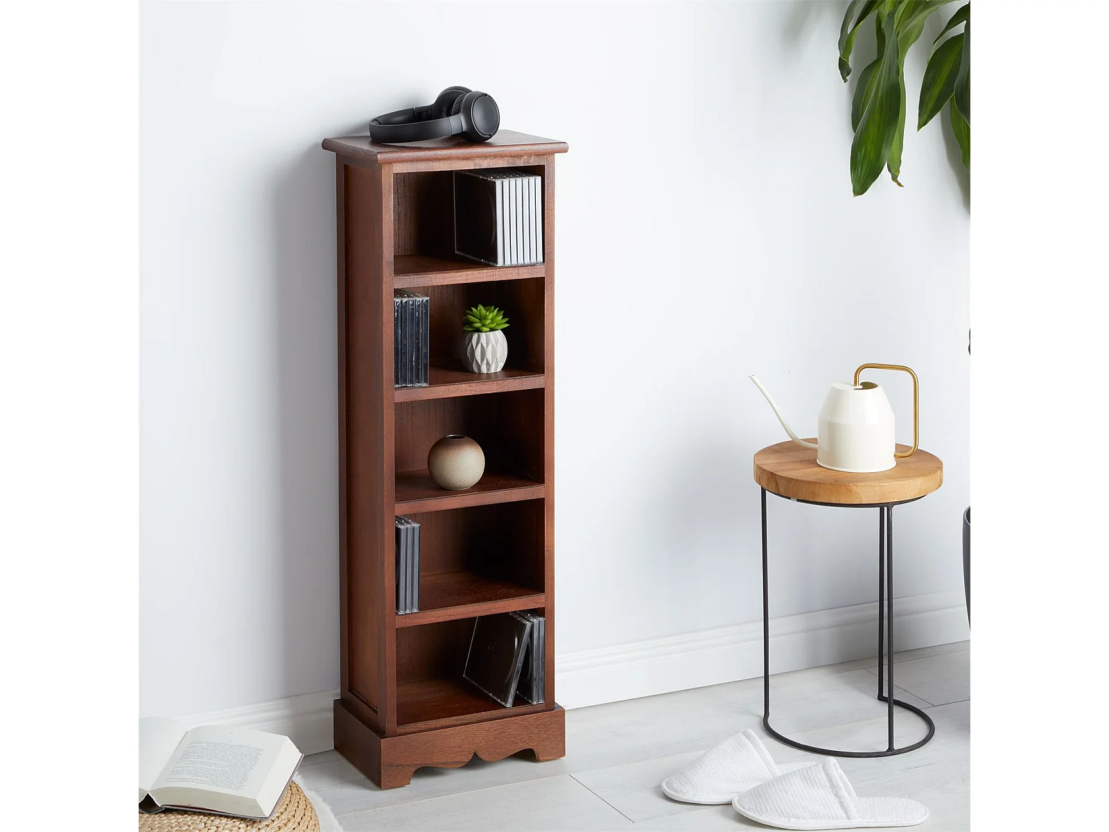 Etagère MUSICA, rangement pour CD avec 4 tablettes, au style maison de campagne, en bois de paulownia et MDF lasuré brun foncé