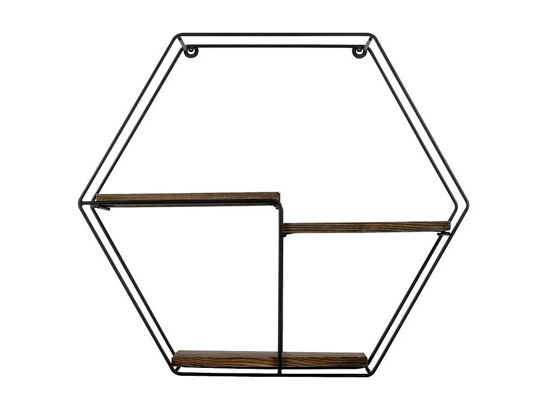 Étagère murale décor bois noyer et métal noir 3 plateaux JENA
