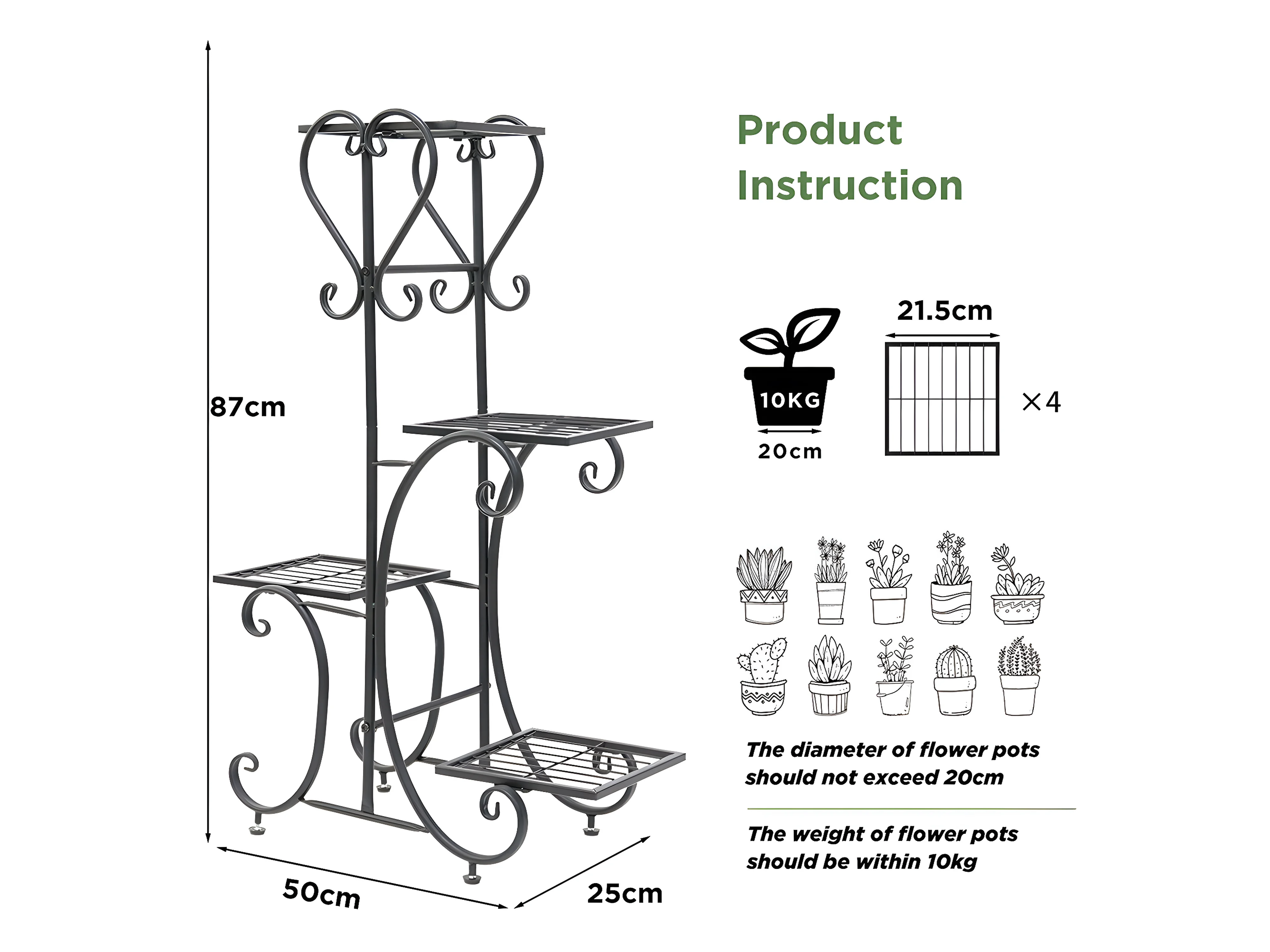 Porte plantes étagère plante métallique de 4 niveaux escalier pour fleurs 53x90cm