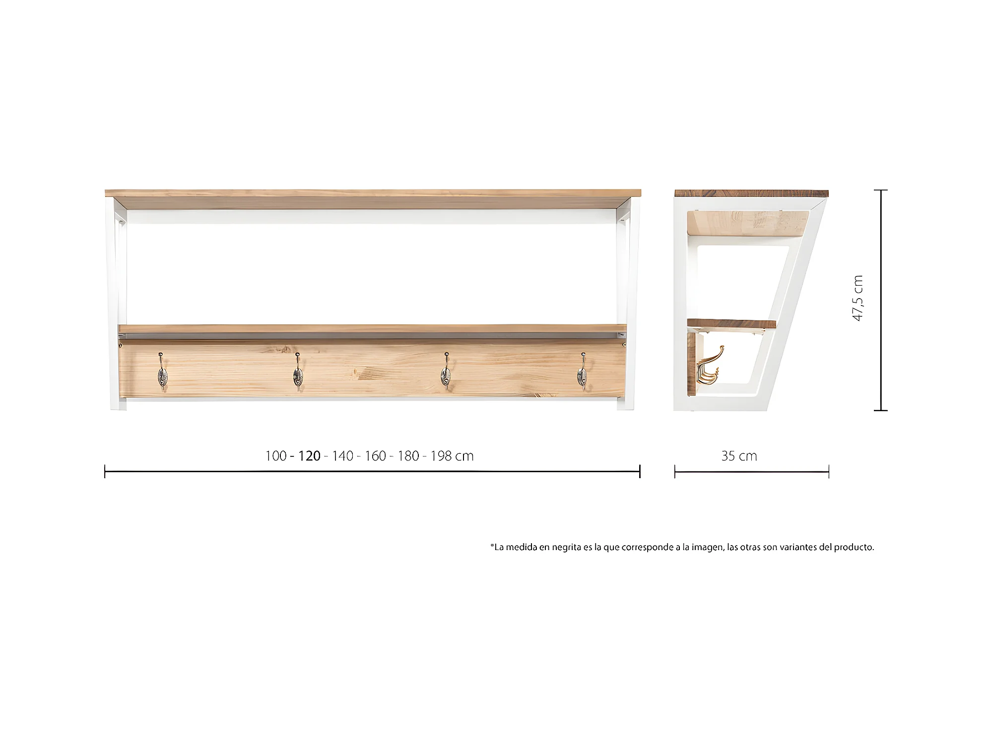 Étagère polygonal portemanteau 100x35x47 Blanc 2 supports industriel