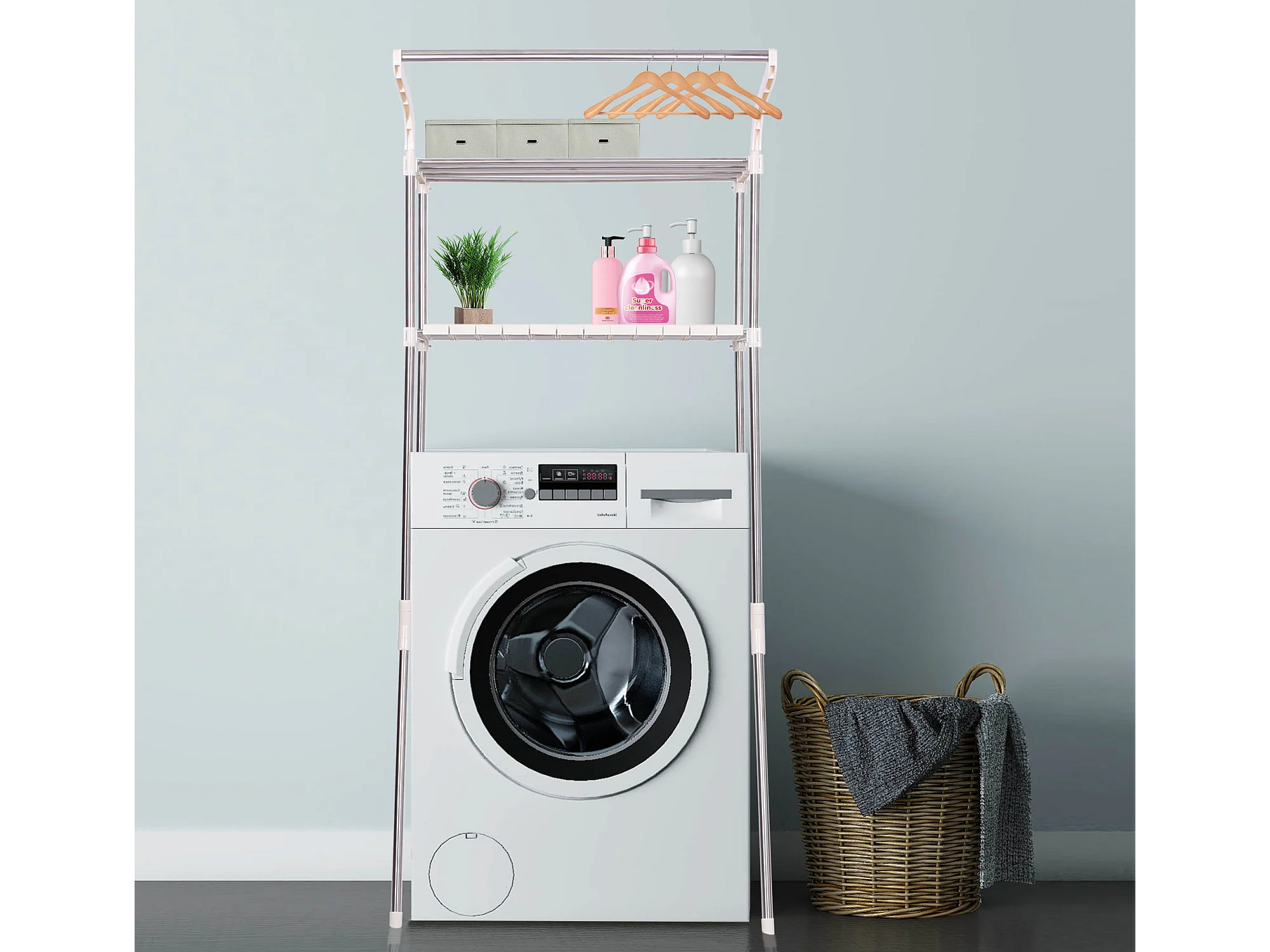 Etagère pour lave-linge Ellsworth en tubes d'acier avec deux espaces de rangement