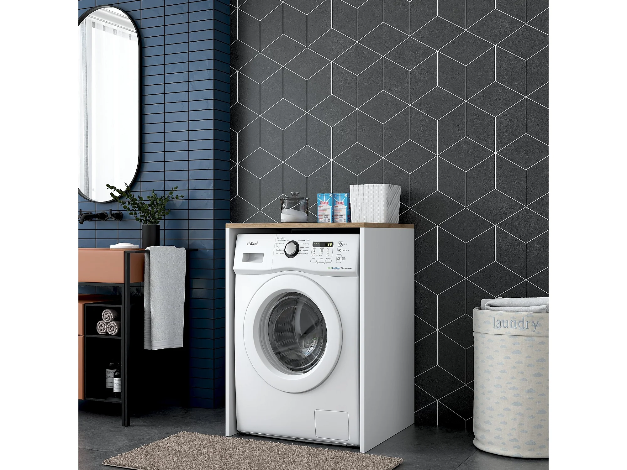 Etagère pour machine à laver décor blanc et noyer H91,8 cm - JUNE