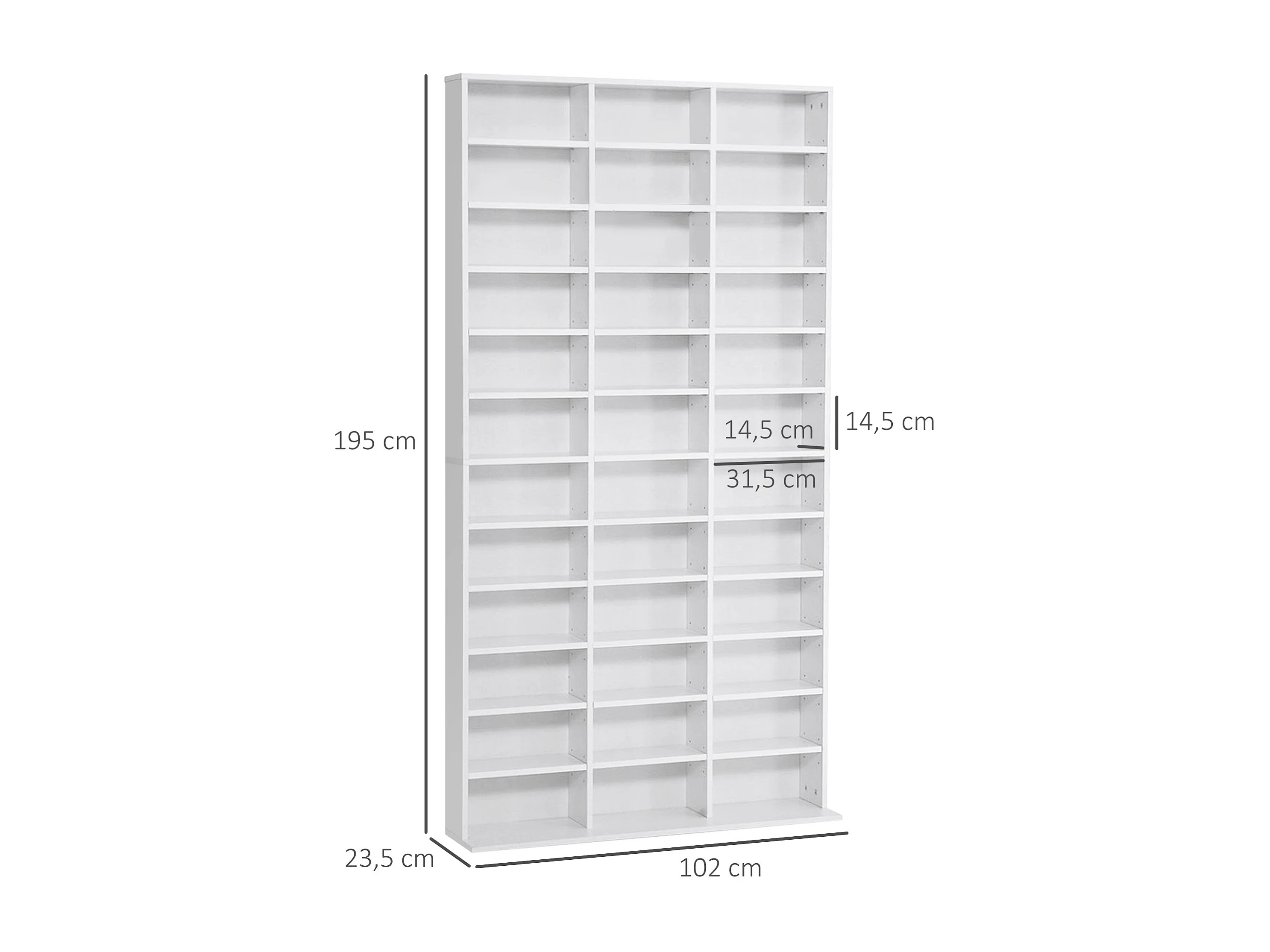 Étagère rangement CD/DVD meuble de rangement pour 1116 CDs 33 compartiments réglables en hauteur 102 x 24 x 195 cm blanc