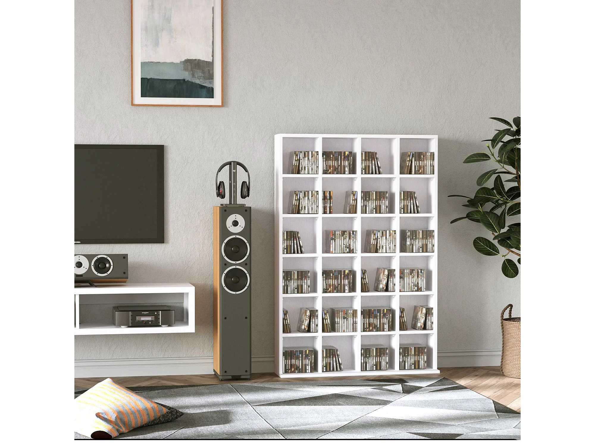 Étagère range CD - meuble rangement CD DVD - 16 compartiments, 12 étagères réglables - max 720 CD/396 DVD - blanc