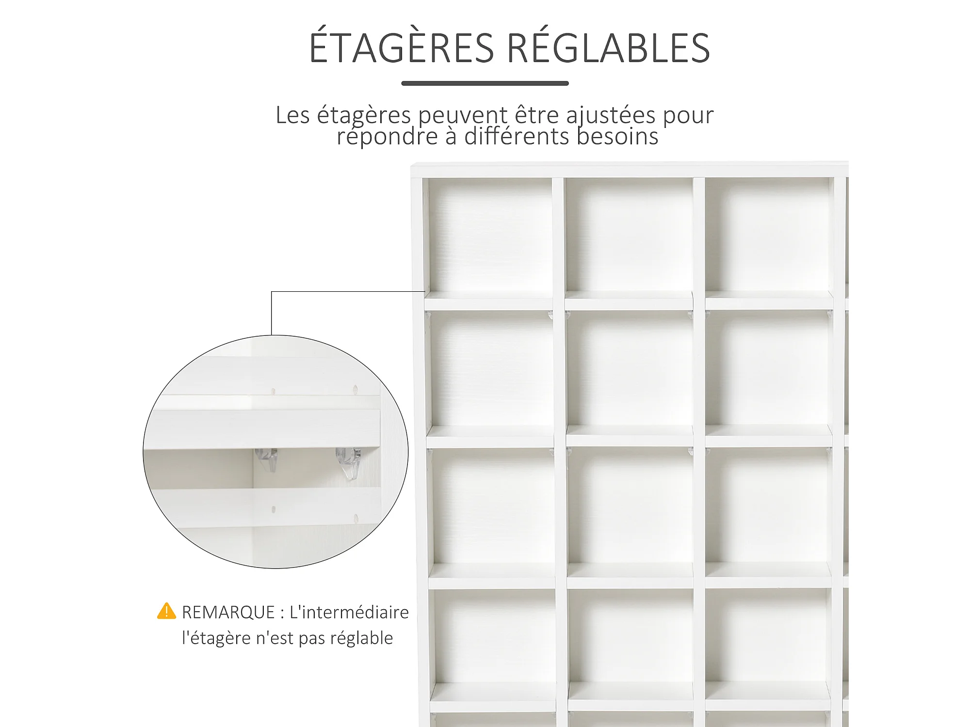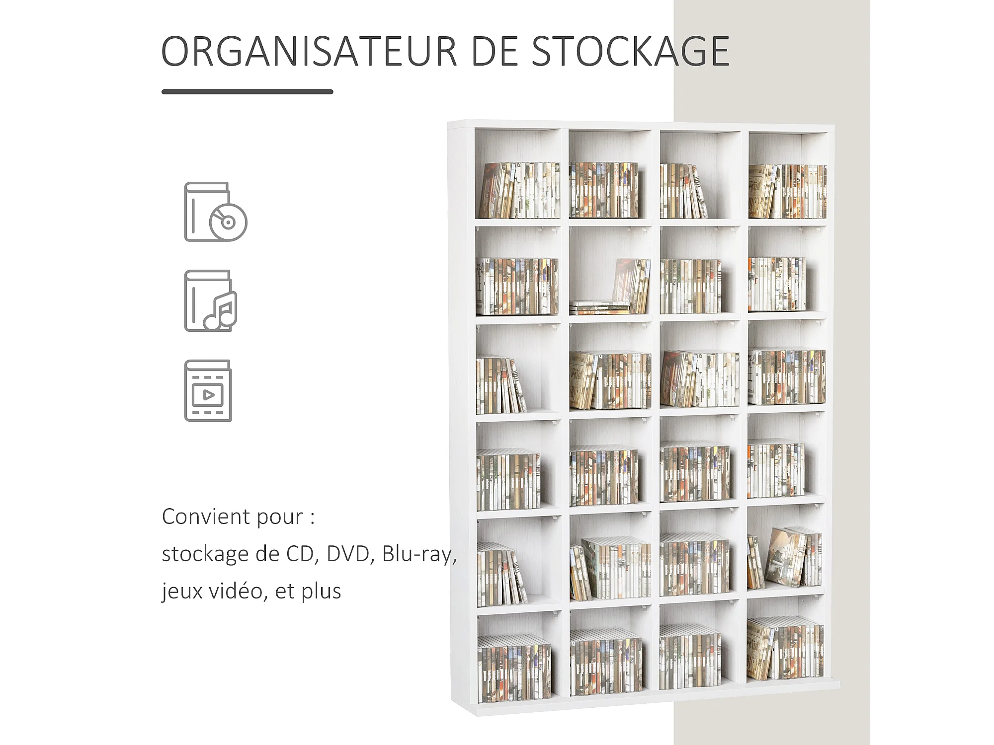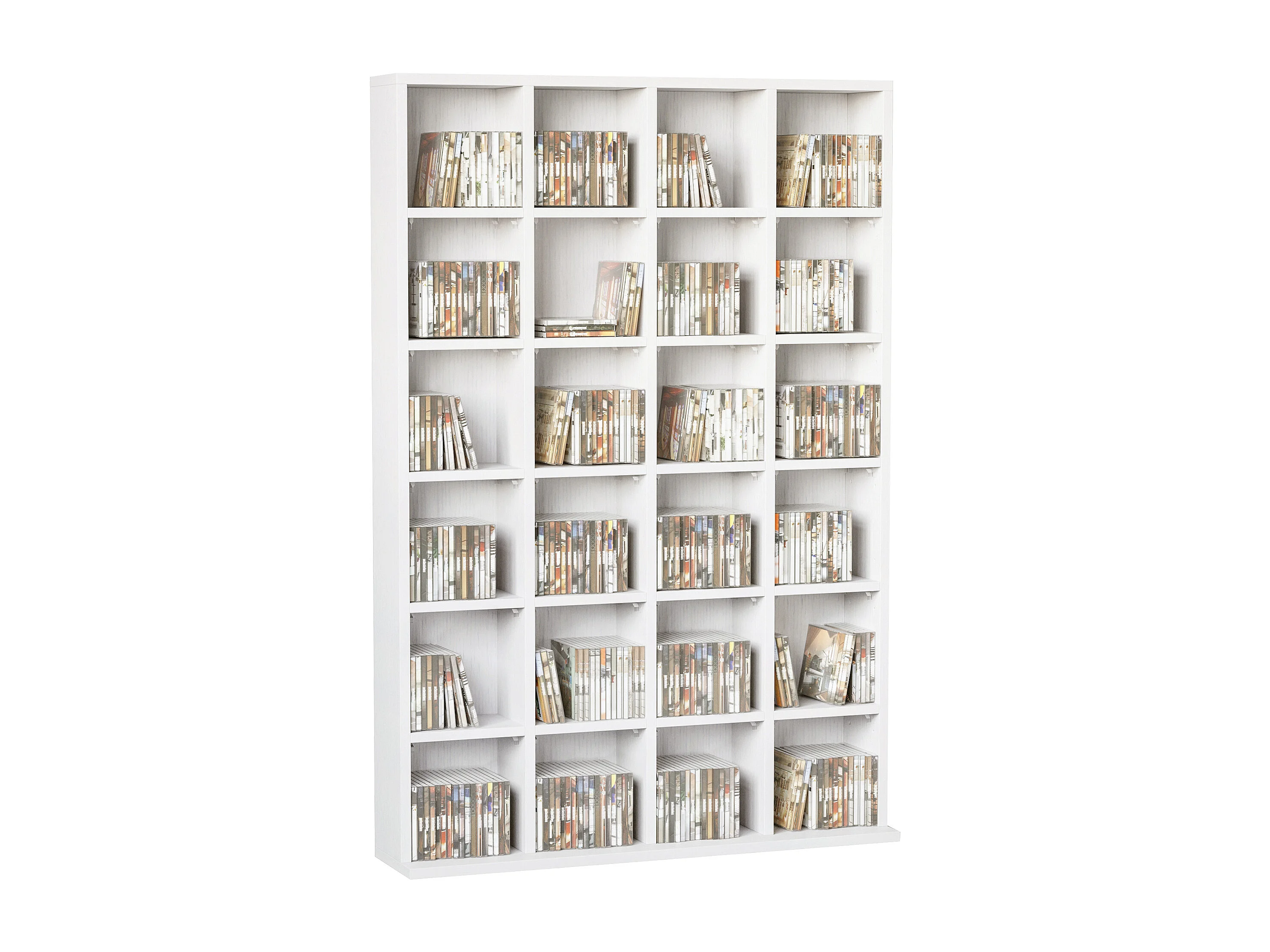 Étagère rangement CD/DVD meuble de rangement pour 480 CDs 24 compartiments réglables en hauteur 89 x 20 x 130 cm blanc