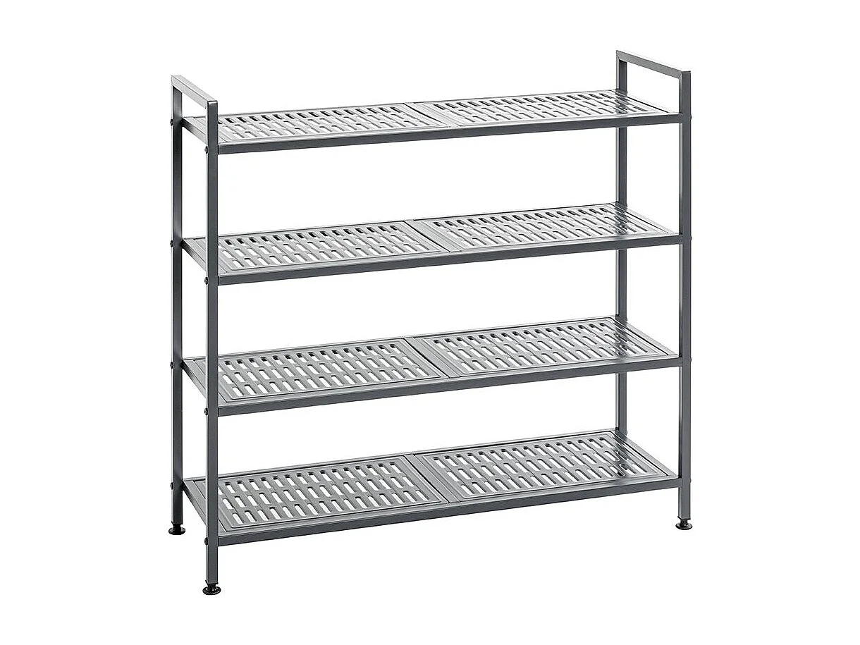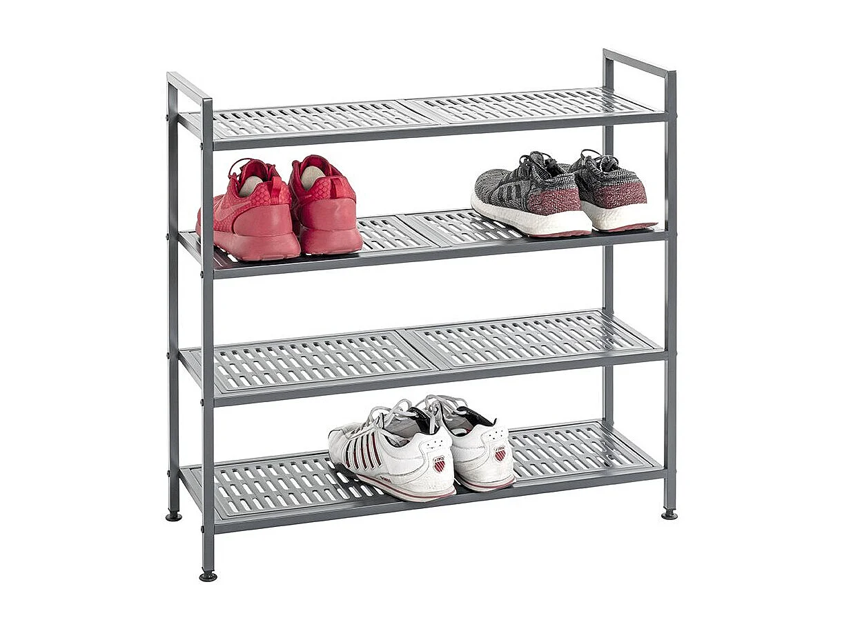 Etagère rangement de chaussures Meuble à chaussures 16 paires en acier coloris gris - Longueur 73 x Hauteur 72 x Profondeur 25 cm