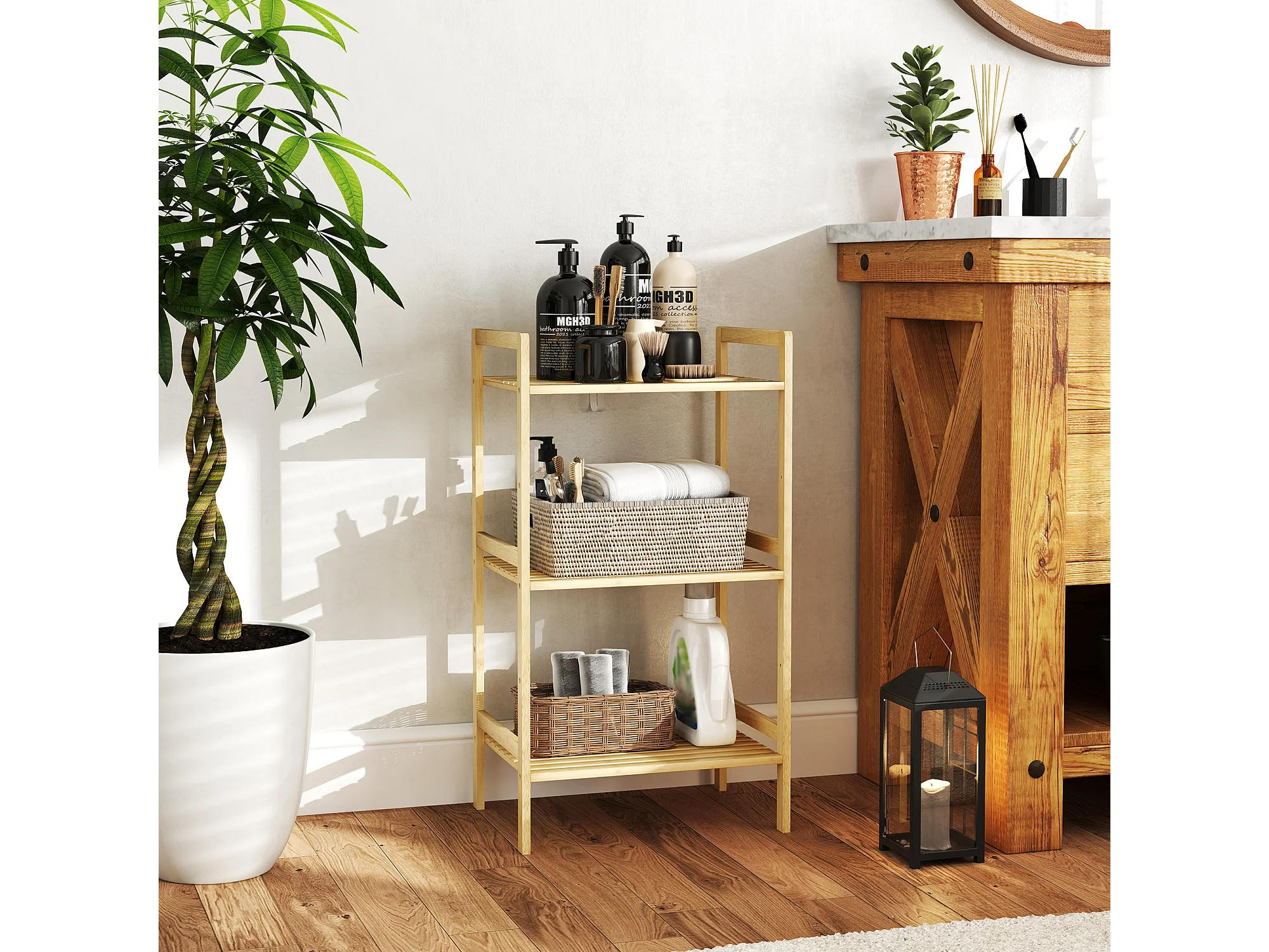 Etagère de rangement 3 niveaux en Bambou H 84 cm
