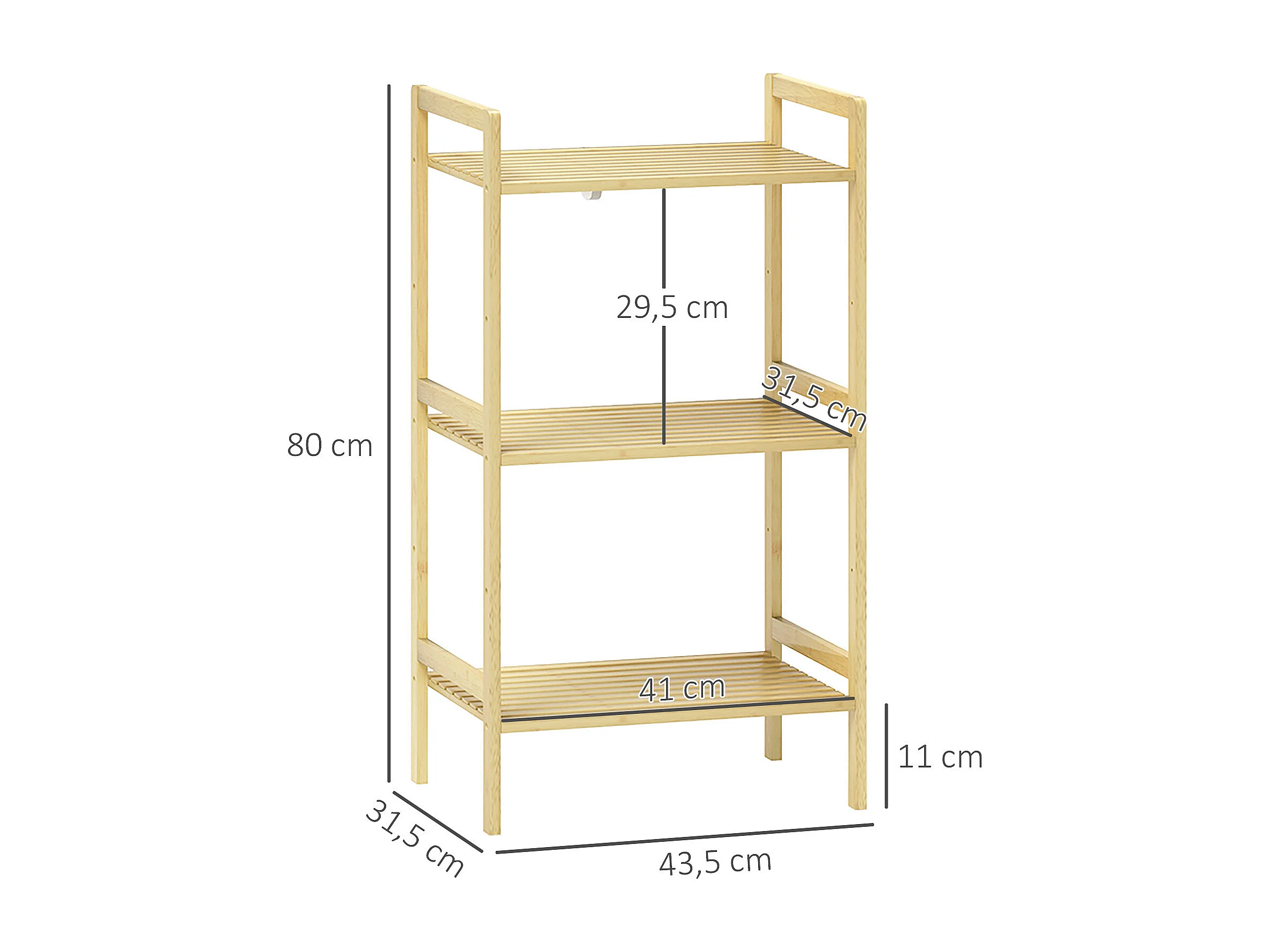 Étagère salle de bain bois bambou verni 3 niveaux réglables étagères à lattes dim. 43 x 31 x 80 cm