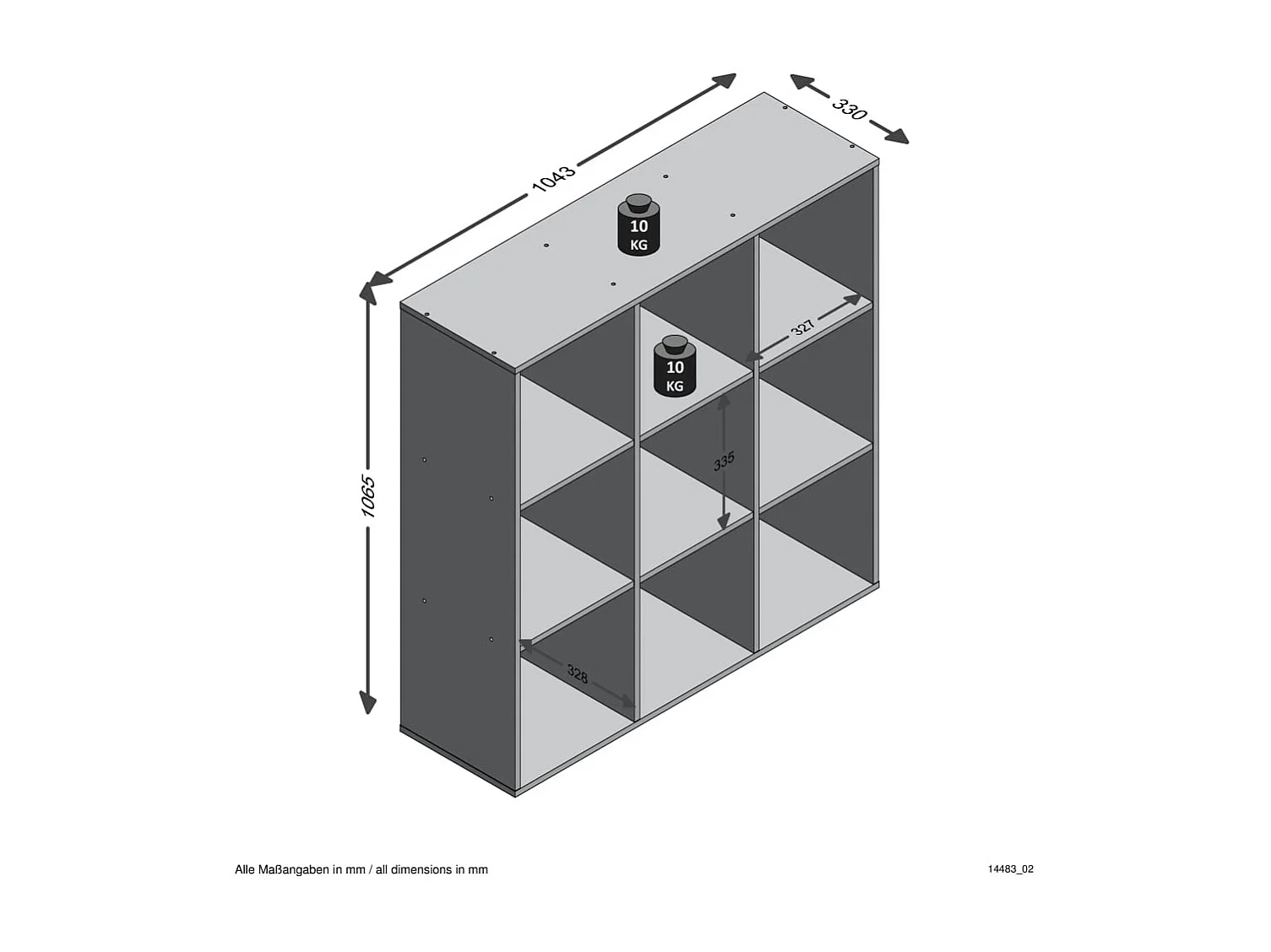 Étagère 9 Cases Design "Gaman" 108cm Chêne