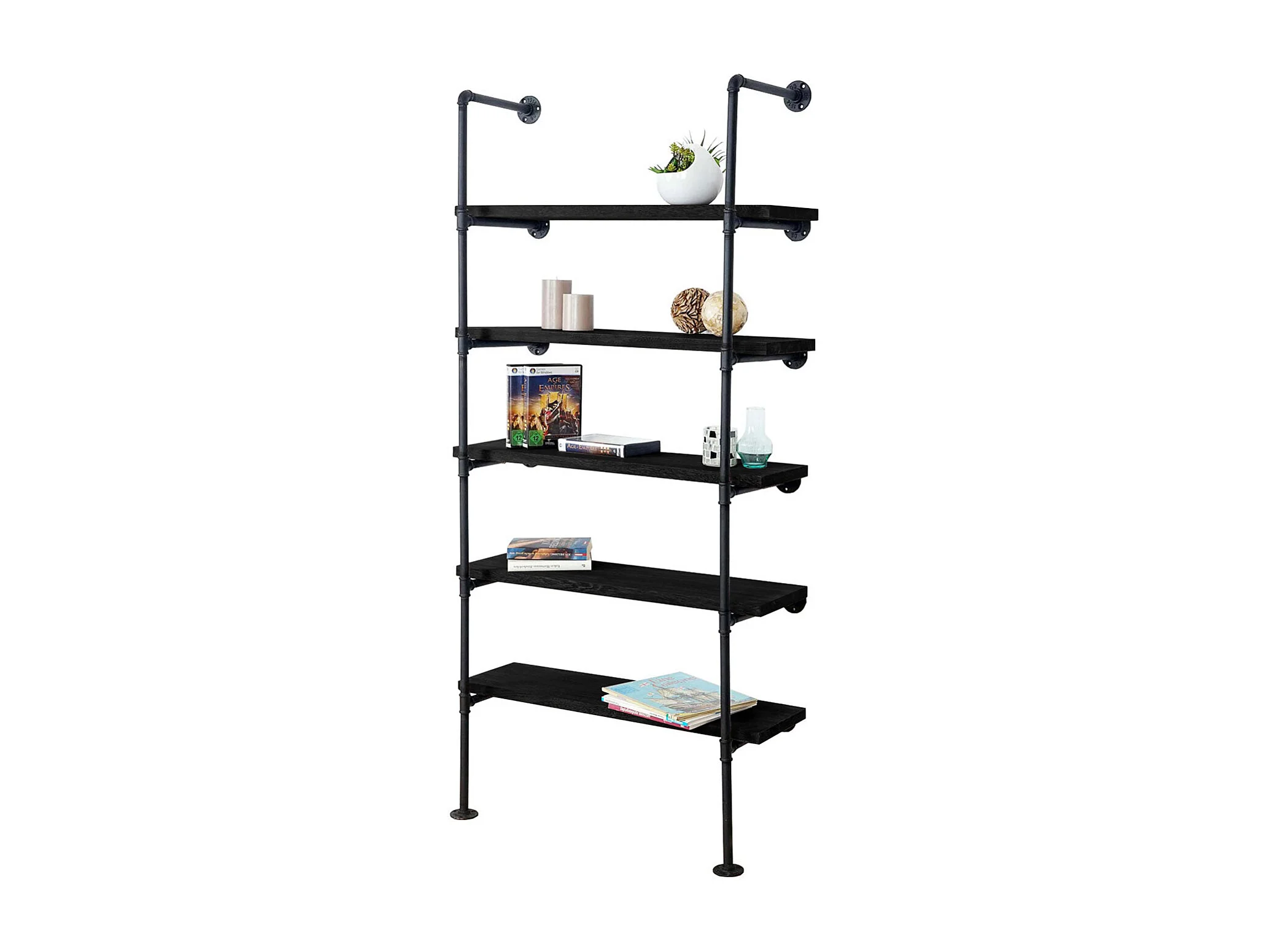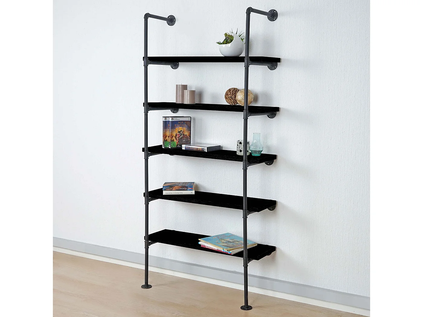 Bibliothèque industrielle à 4 niveaux, 64 x 24 x 119,5 cm, étagère de rangement avec crochets