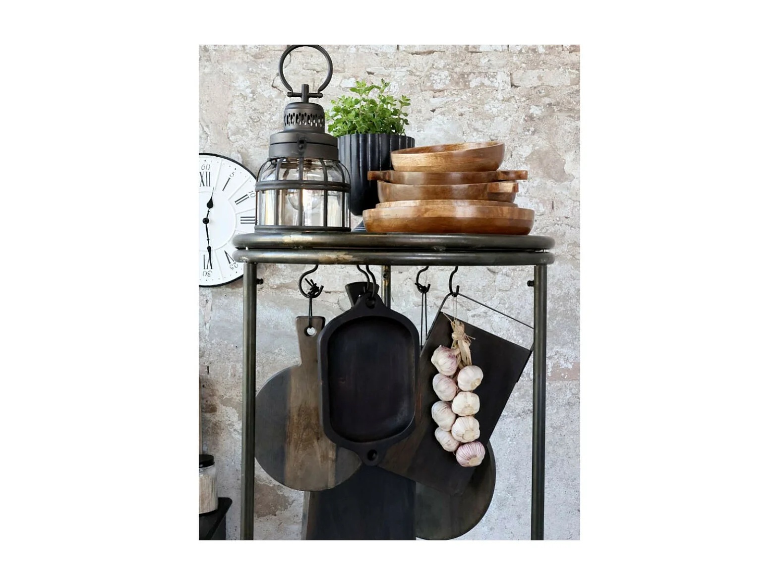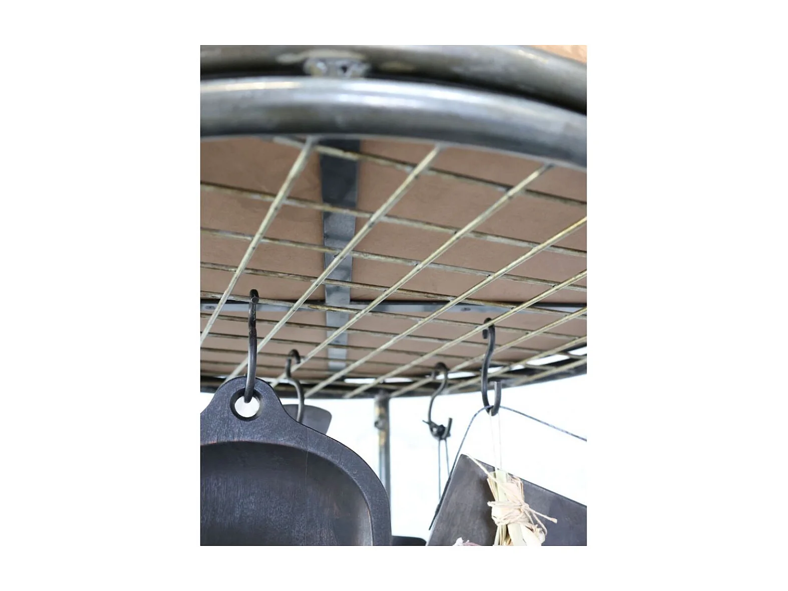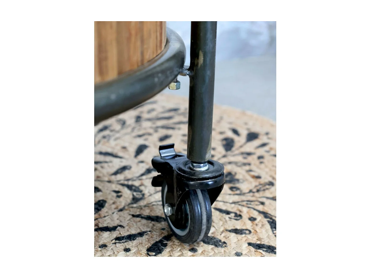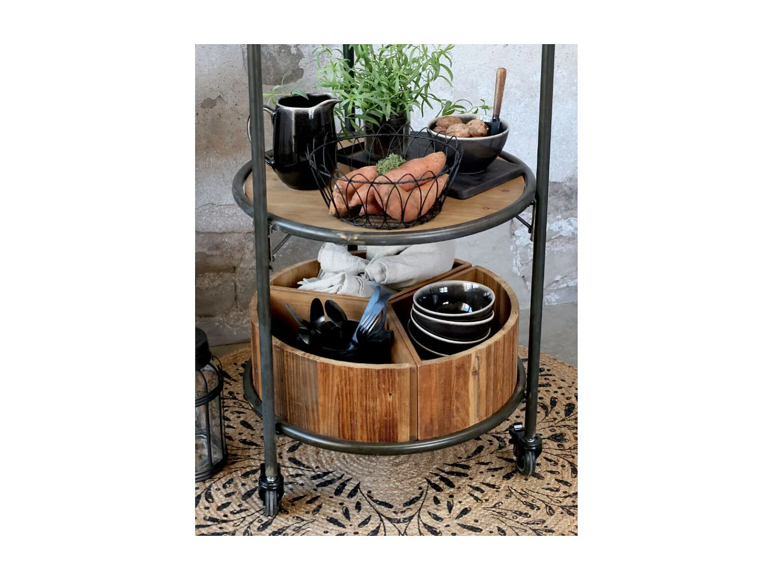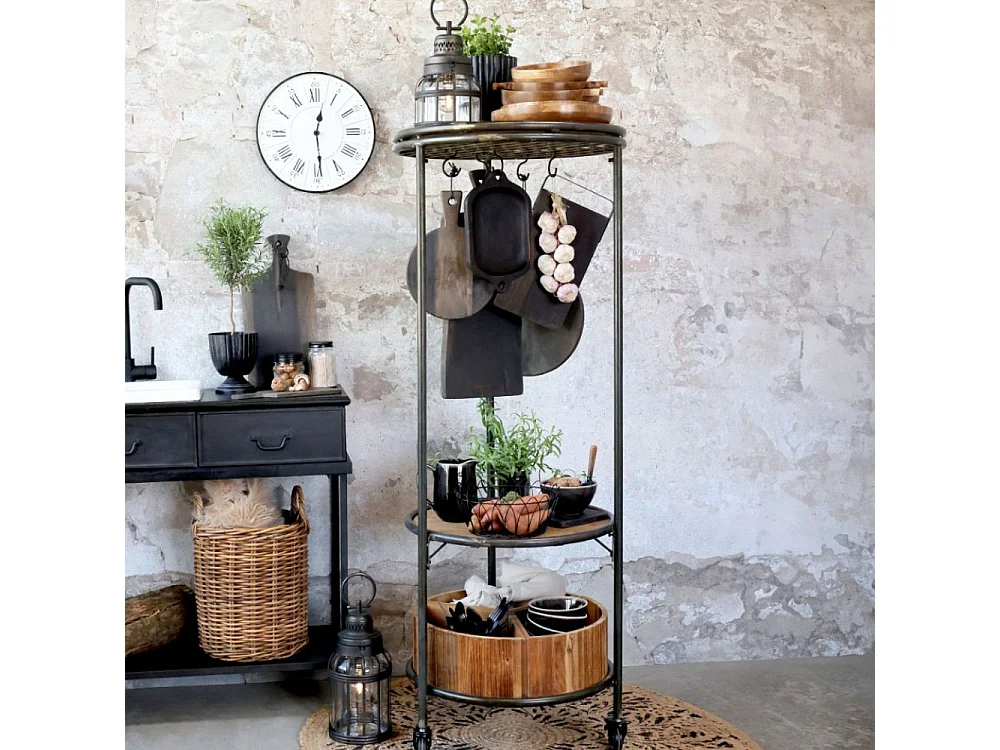 Etagère sur roues en bois recyclé marron et fer noir Ø.60 x Ht.160.5cm