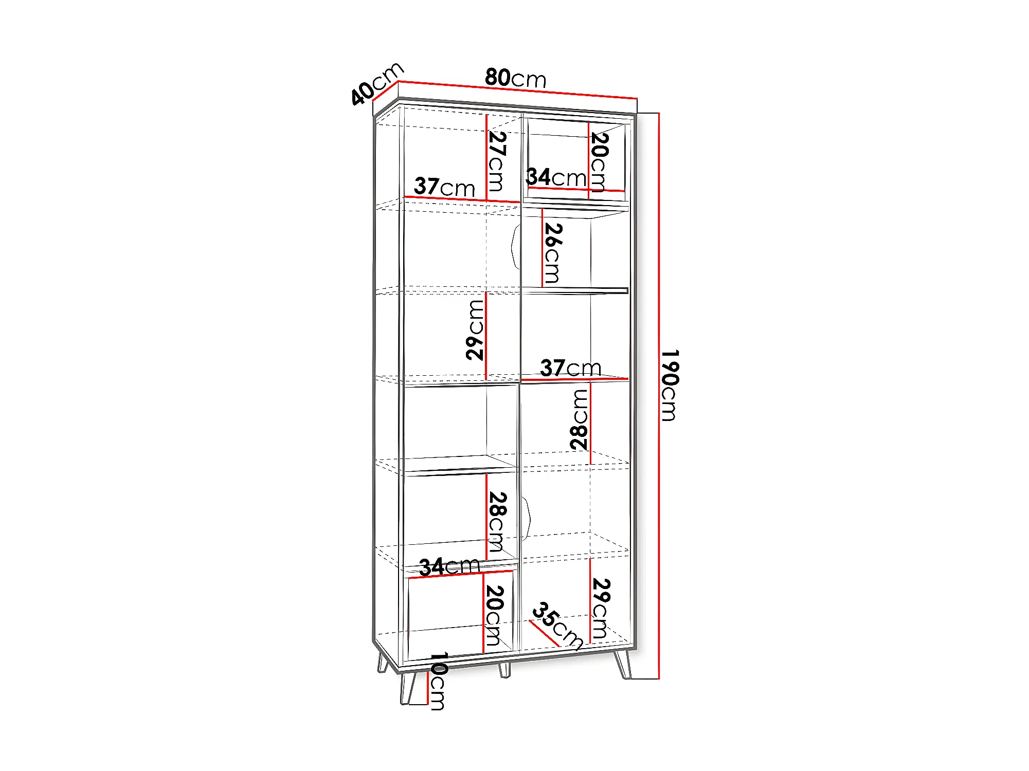 Étagère Domvera 102, Avec des portes, Stratifié, Le nombre de portes: 2, 190x80x40cm