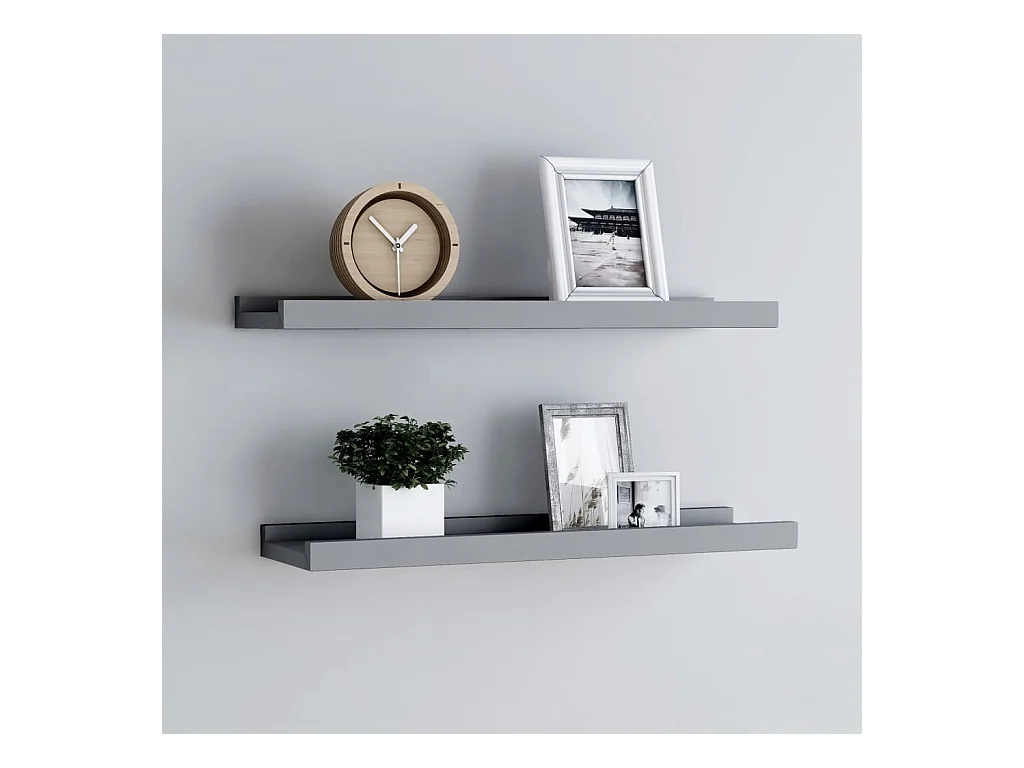 Étagères à rebord pour cadre photo 2 pcs Gris 60x9x3 MDF