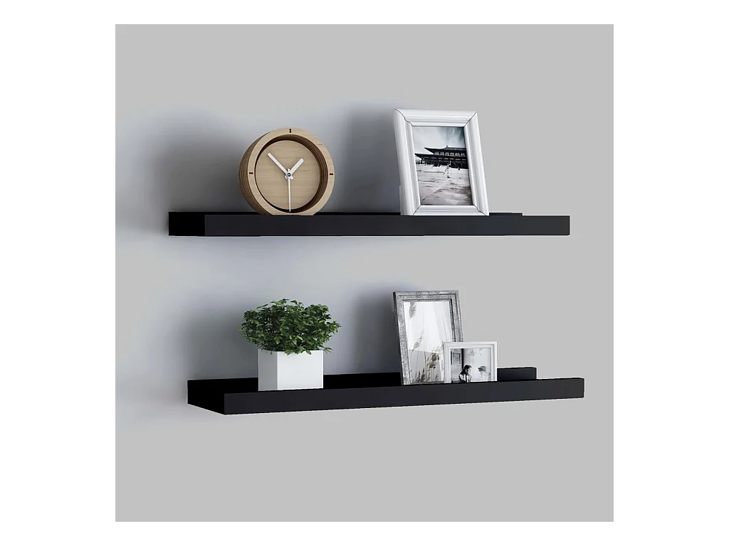 Étagères à rebord pour cadre photo 2 pcs Noir 60x9x3 MDF