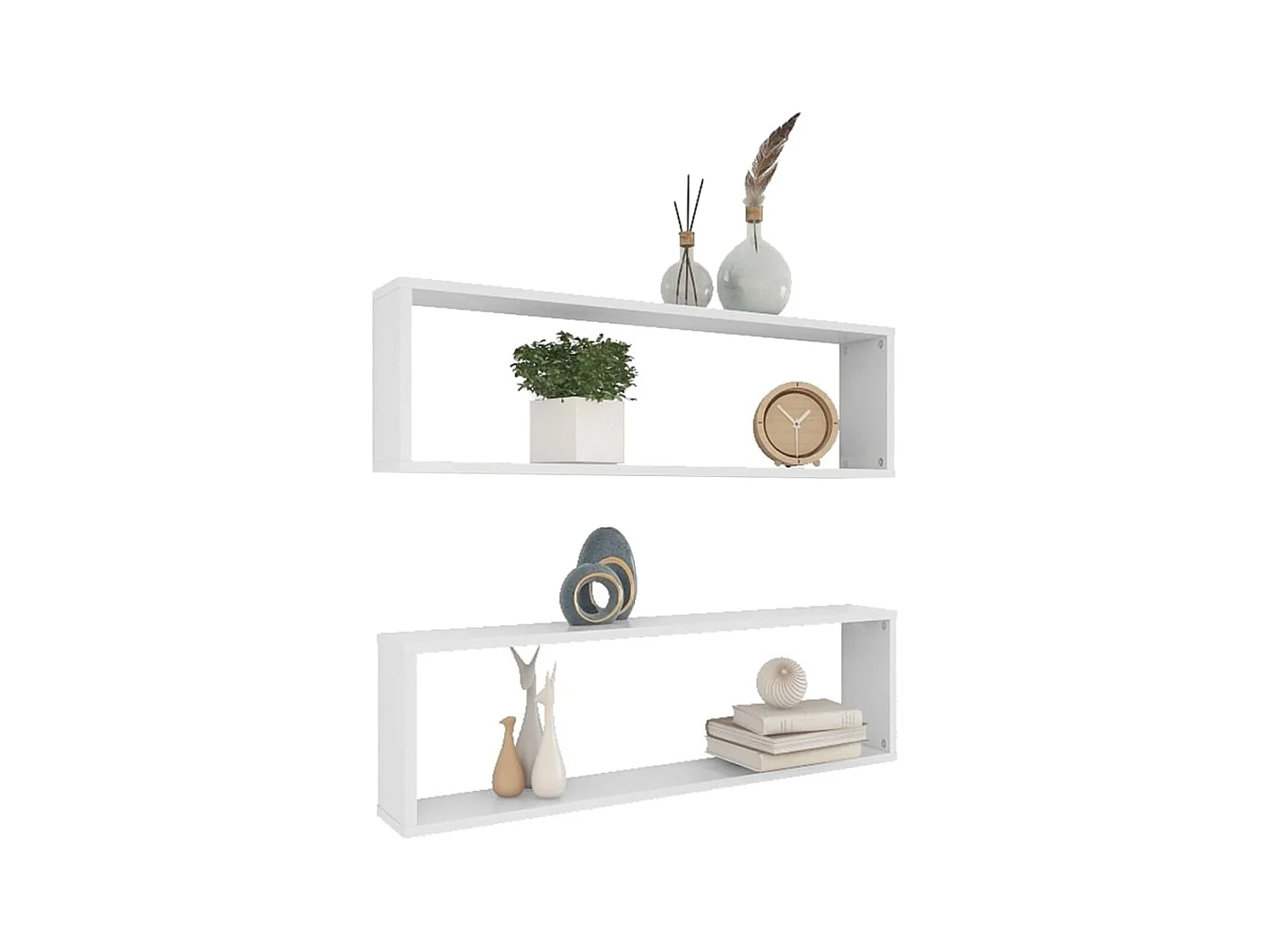 Étagères cube murales 2 pcs Blanc 100x15x30 cm Aggloméré OFR74641 BonneVie Meuble