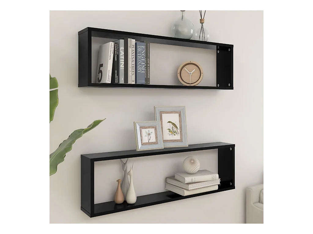 Étagères cube murales 2 pcs Noir 100x15x30 cm Aggloméré OFR78397 BonneVie Meuble