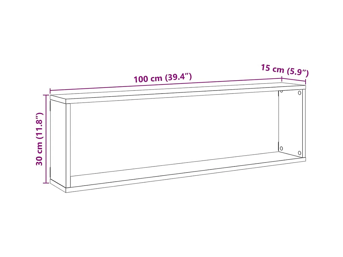 Étagères cube murales 4 pcs vieux bois 100x15x30 cm
