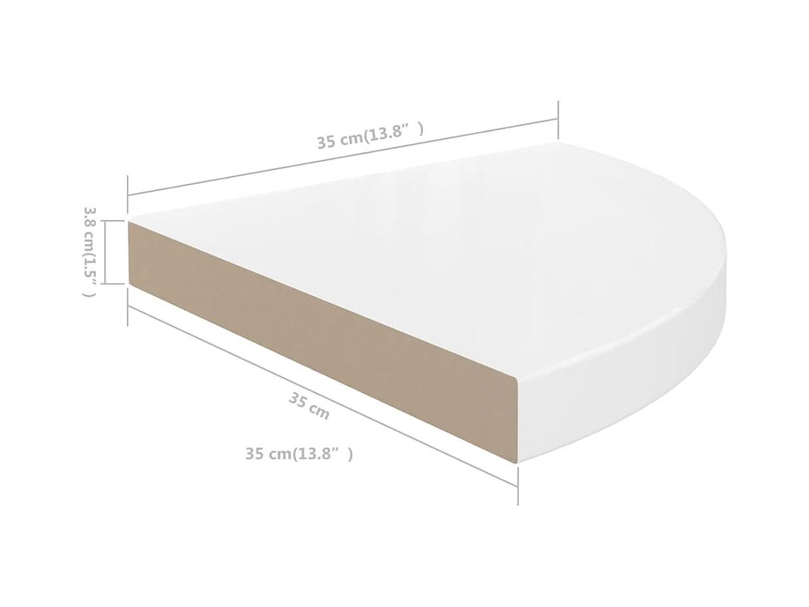 Étagère d'angle flottante Blanc brillant 35x35x3,8 MDF