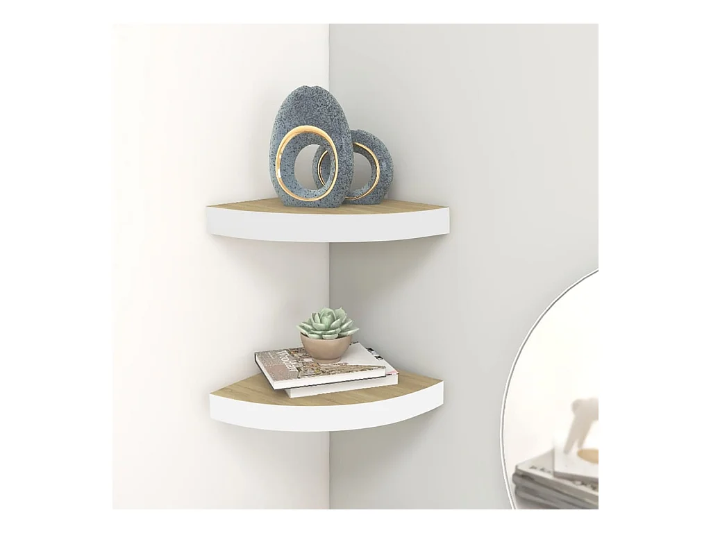 Étagères d'angle murales 2 pcs Chêne et blanc 35x35x3,8 MDF