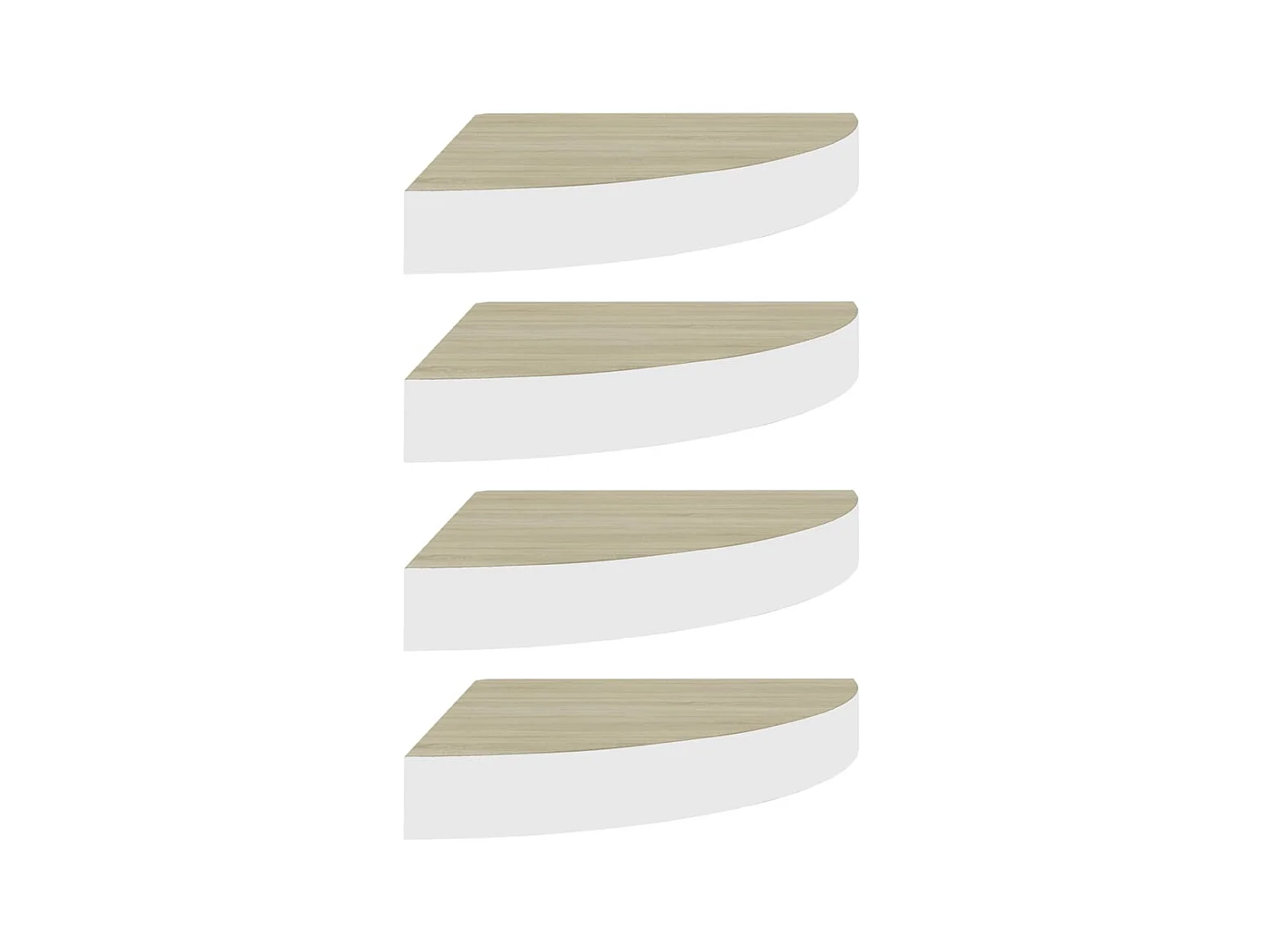 Étagères d'angle murales 4 pcs Chêne et blanc 25x25x3,8 MDF