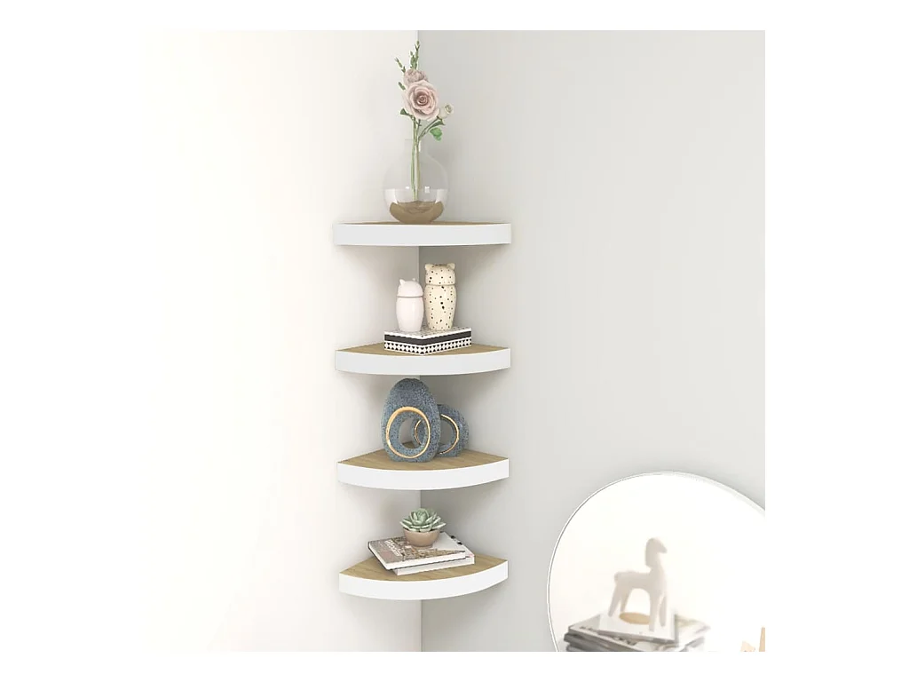 Étagère d'angle murale Chêne et blanc 25x25x3,8 MDF