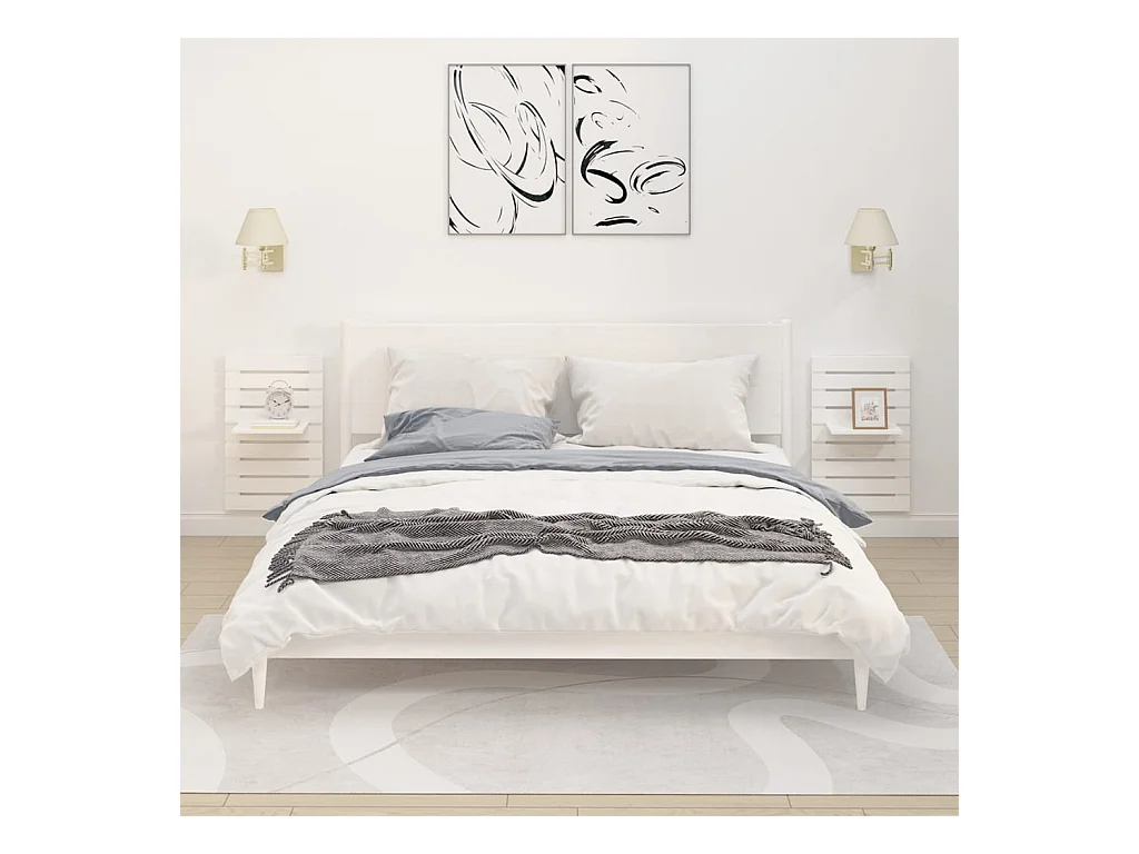 Étagères de chevet murales 2 pcs Blanc Bois de pin massif