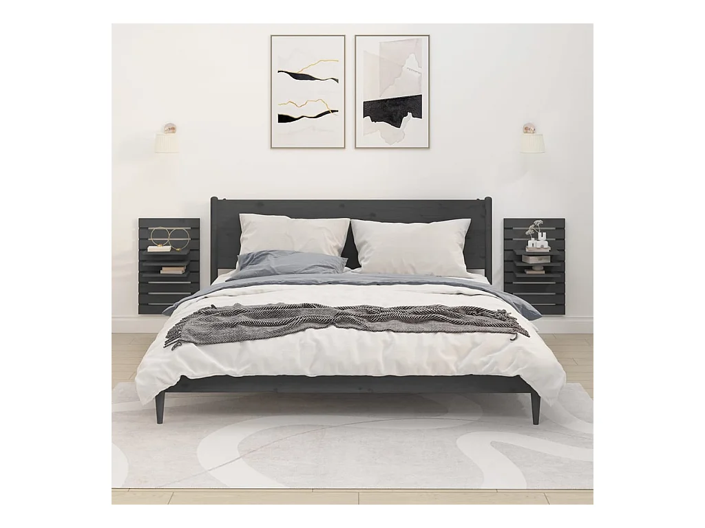 Étagères de chevet murales 2 pcs Gris Bois de pin massif