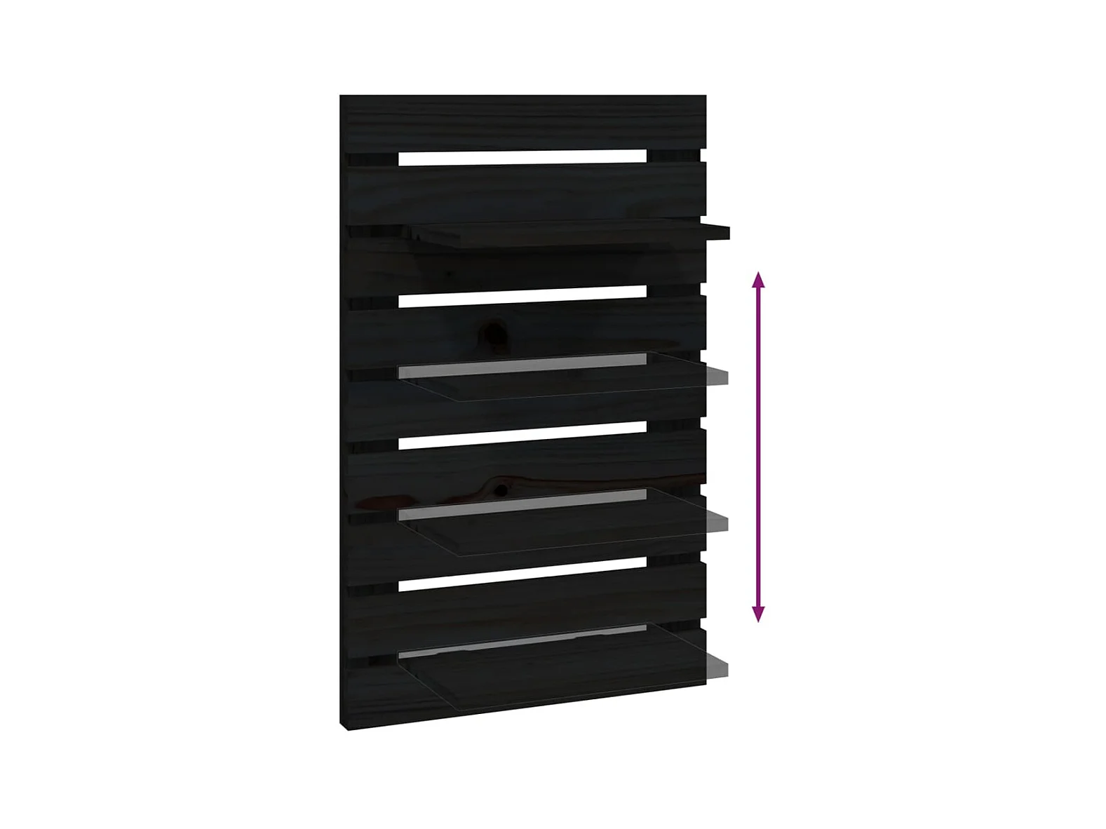 Étagères de chevet murales 2 pcs Noir Bois de pin massif