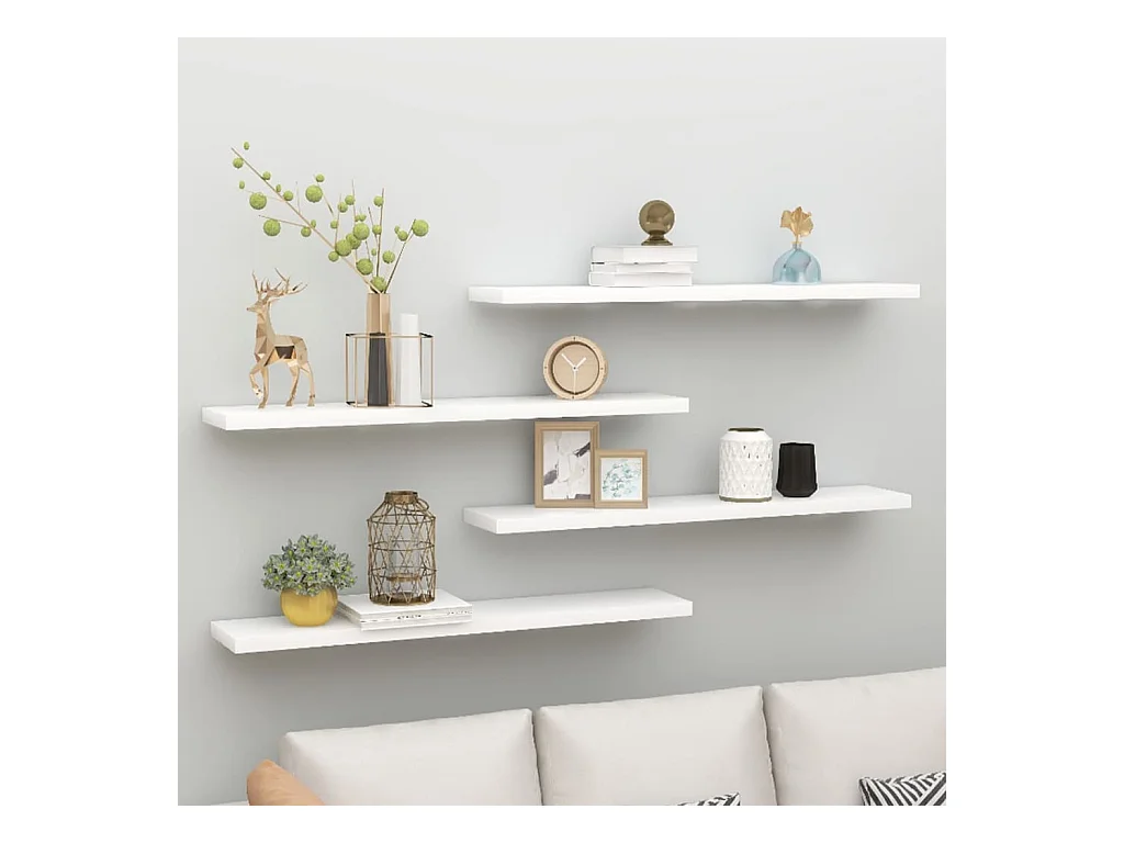 Étagère murale flottante 4pcs Blanc brillant 120x23,5x3,8 MDF