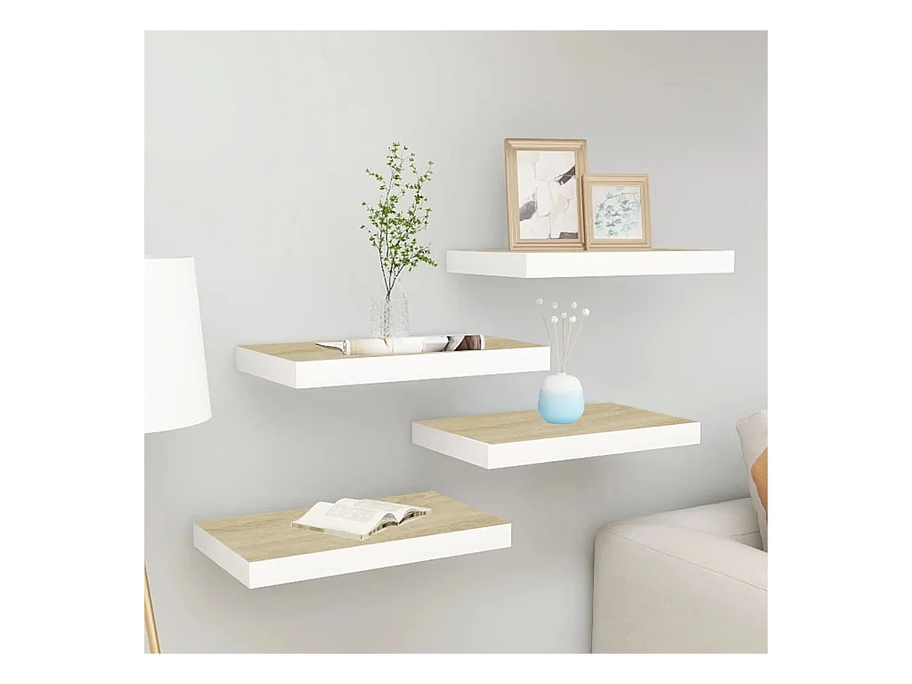 Étagères flottantes 4 pcs Chêne et blanc 50x23x3,8 MDF