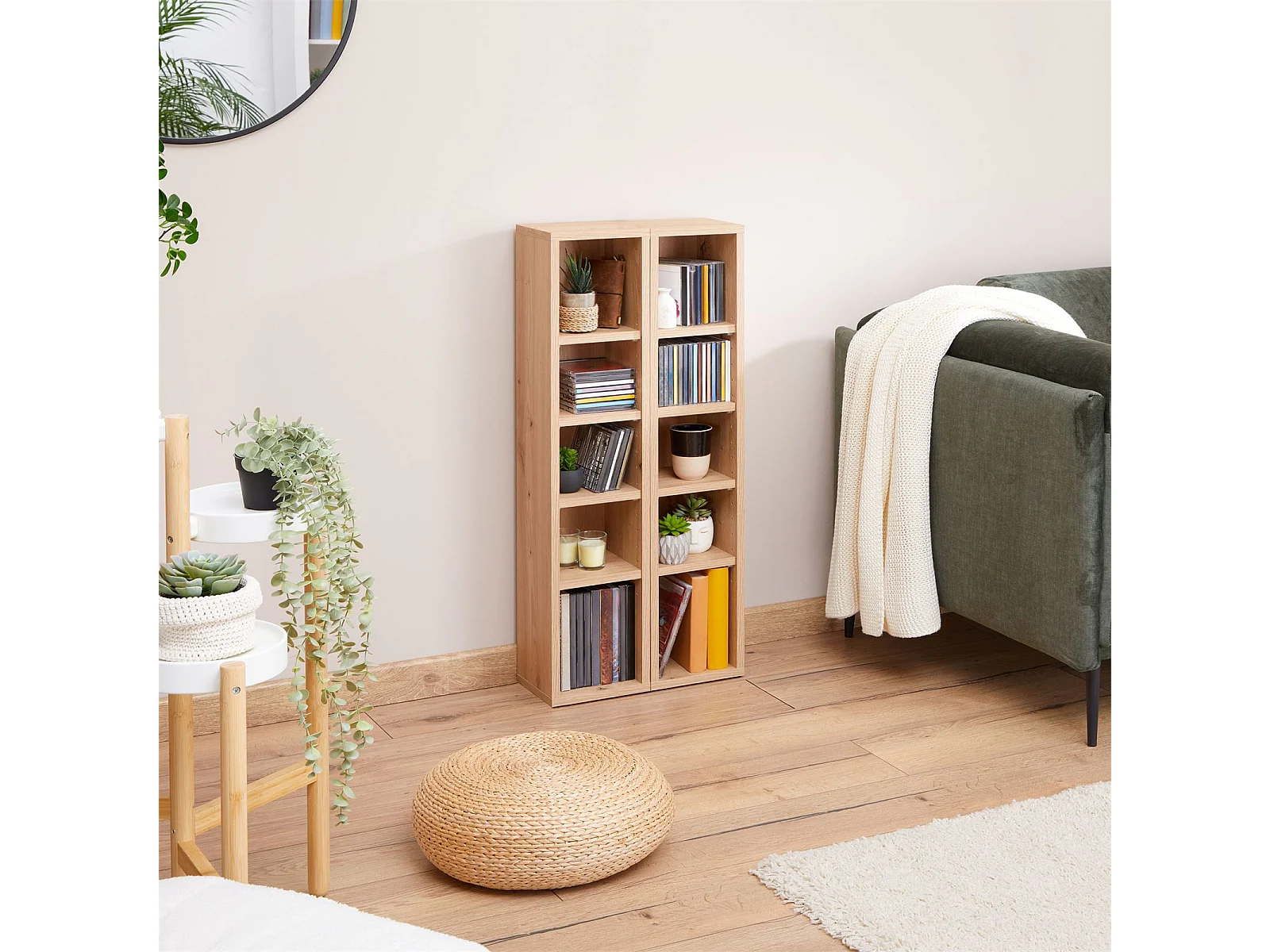 Etagères modulables MUSIQUE pour CD et DVD, lot de 2 meubles de rangement en colonne, 10 compartiments, en mélaminé chêne artisan
