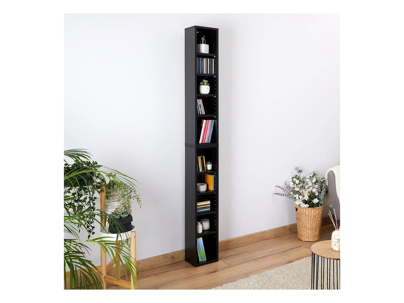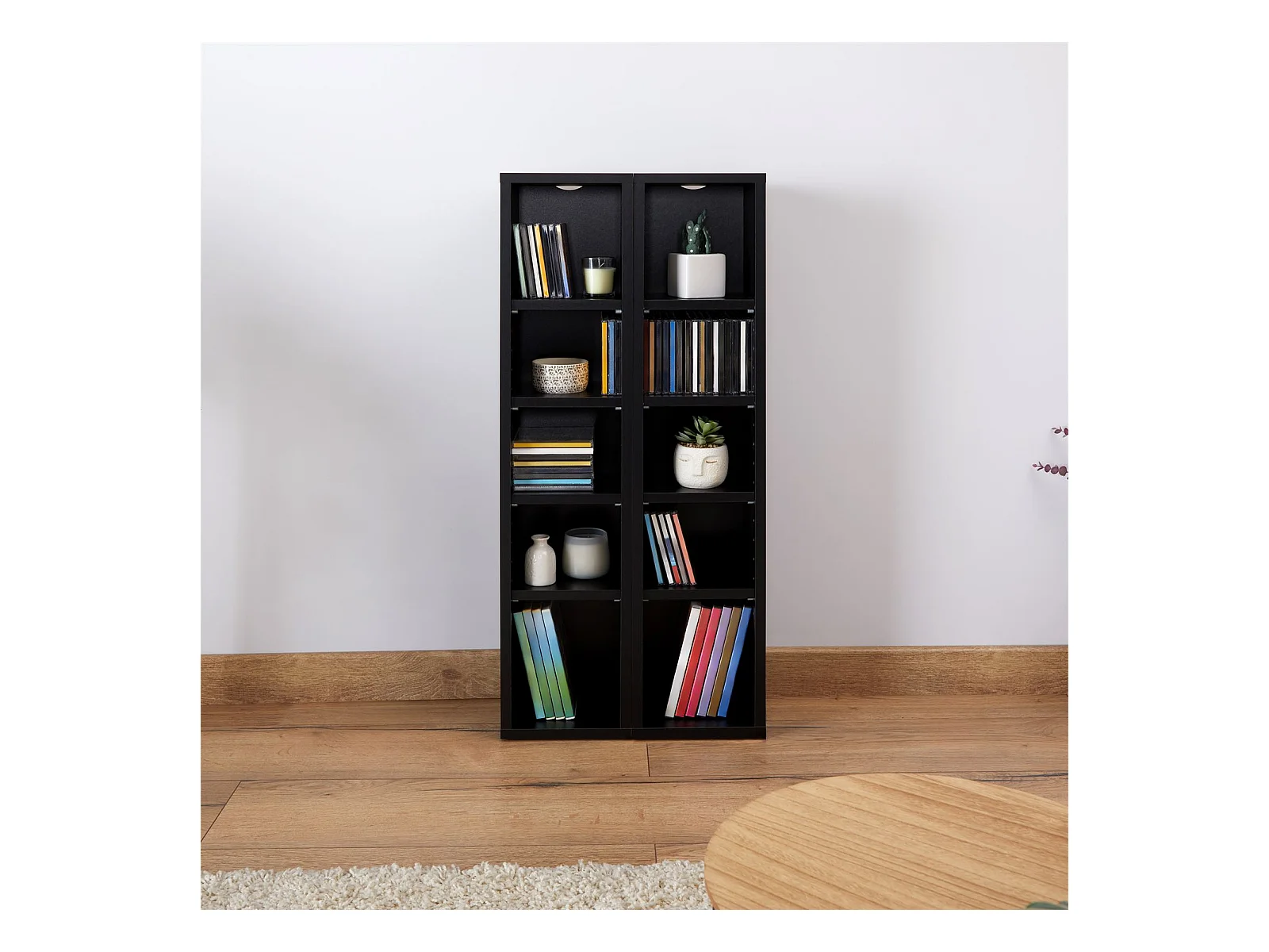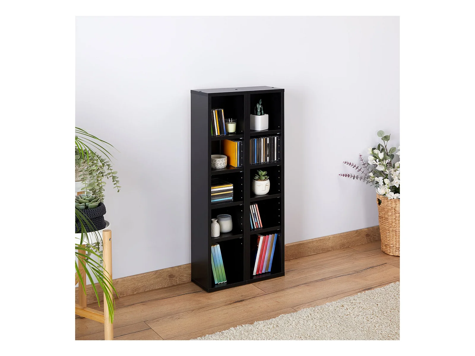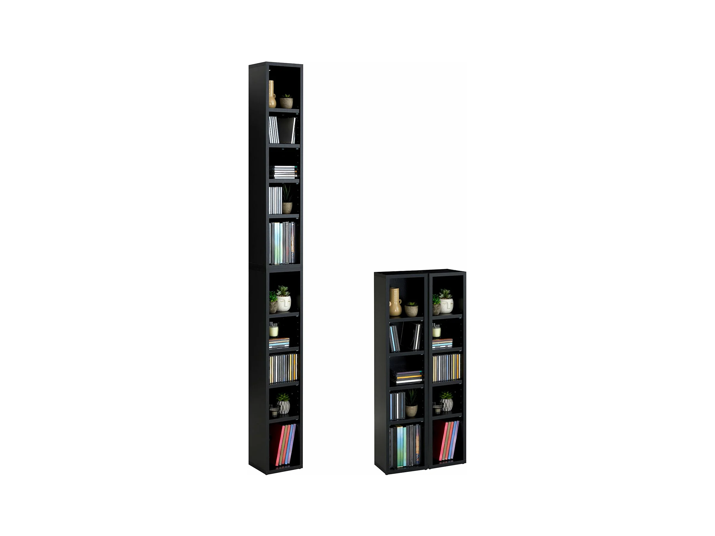 Etagères modulables MUSIQUE pour CD et DVD, lot de 2 meubles de rangement en colonne avec 10 compartiments, en mélaminé noir mat