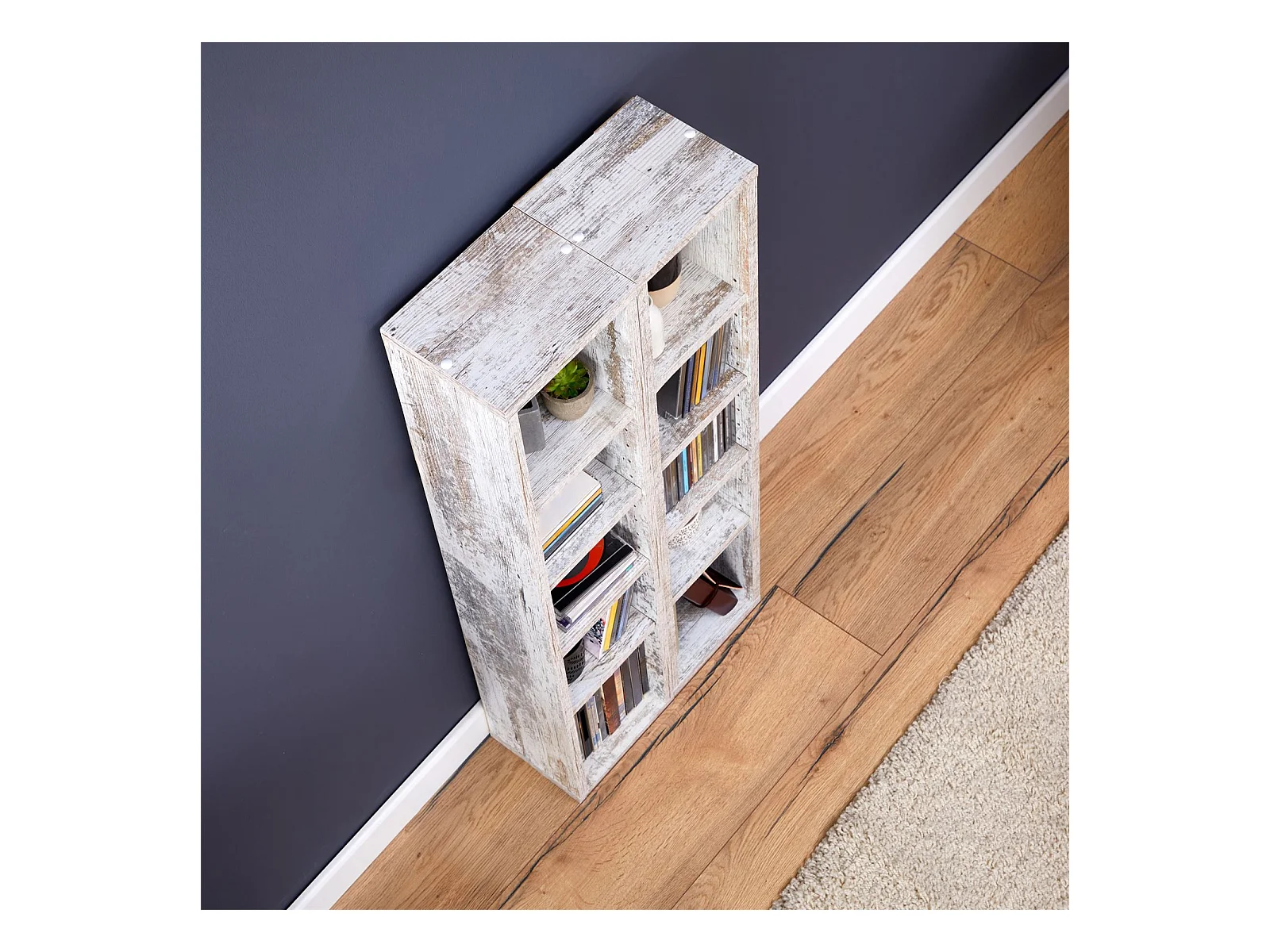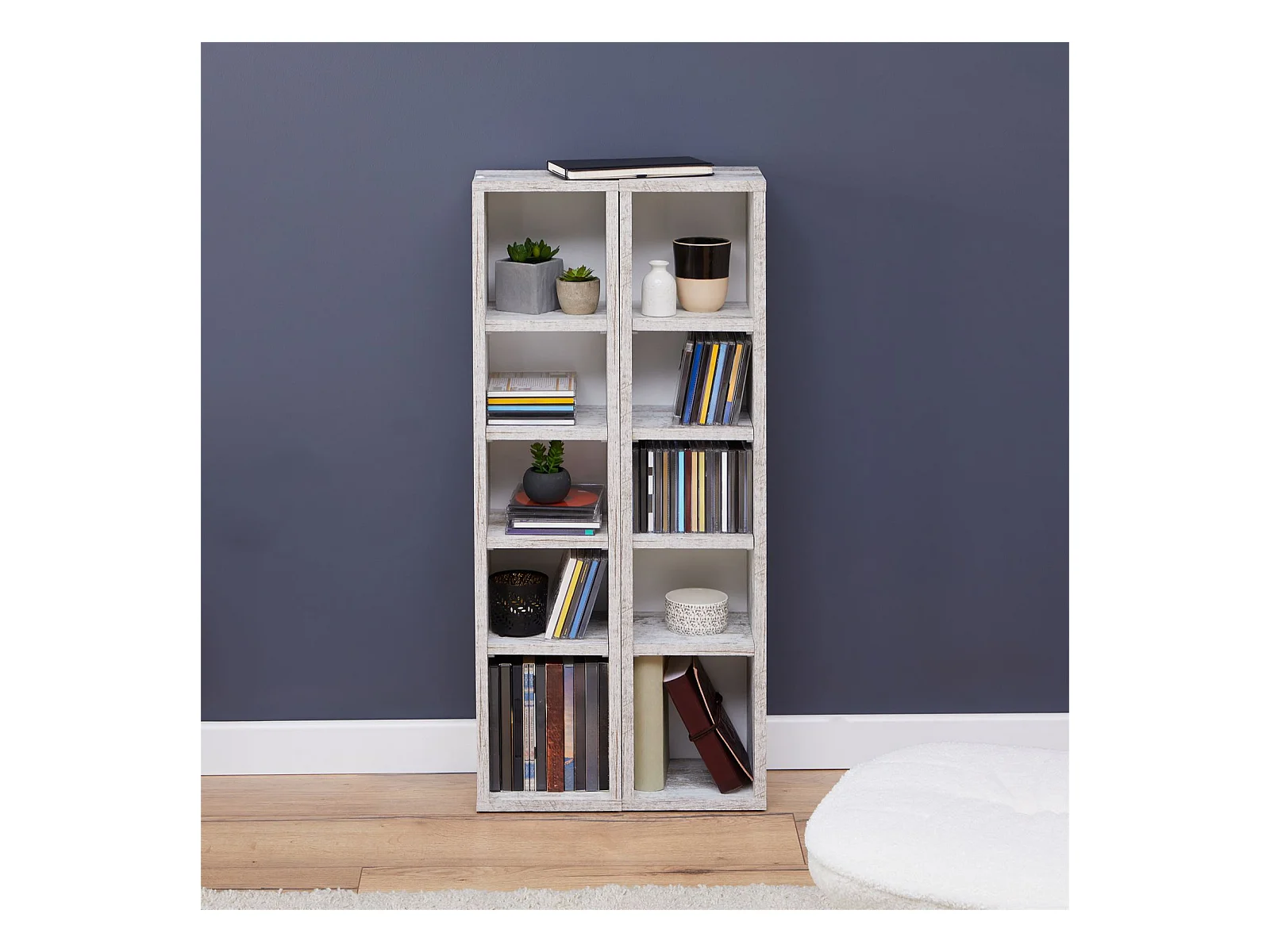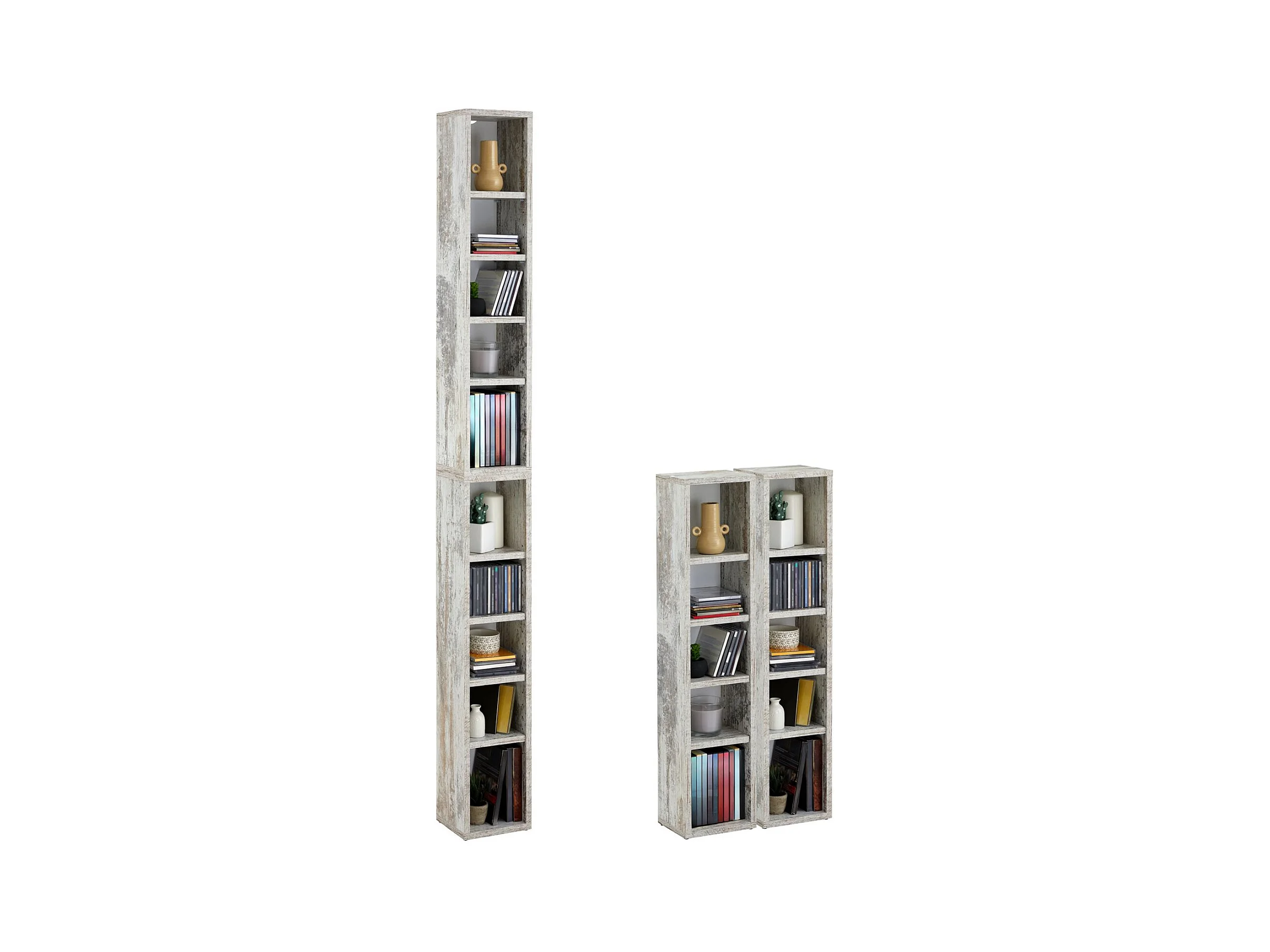 Etagères modulables MUSIQUE pour CD et DVD, lot de 2 meubles de rangement en colonne avec 10 compartiments, en mélaminé shabby chic