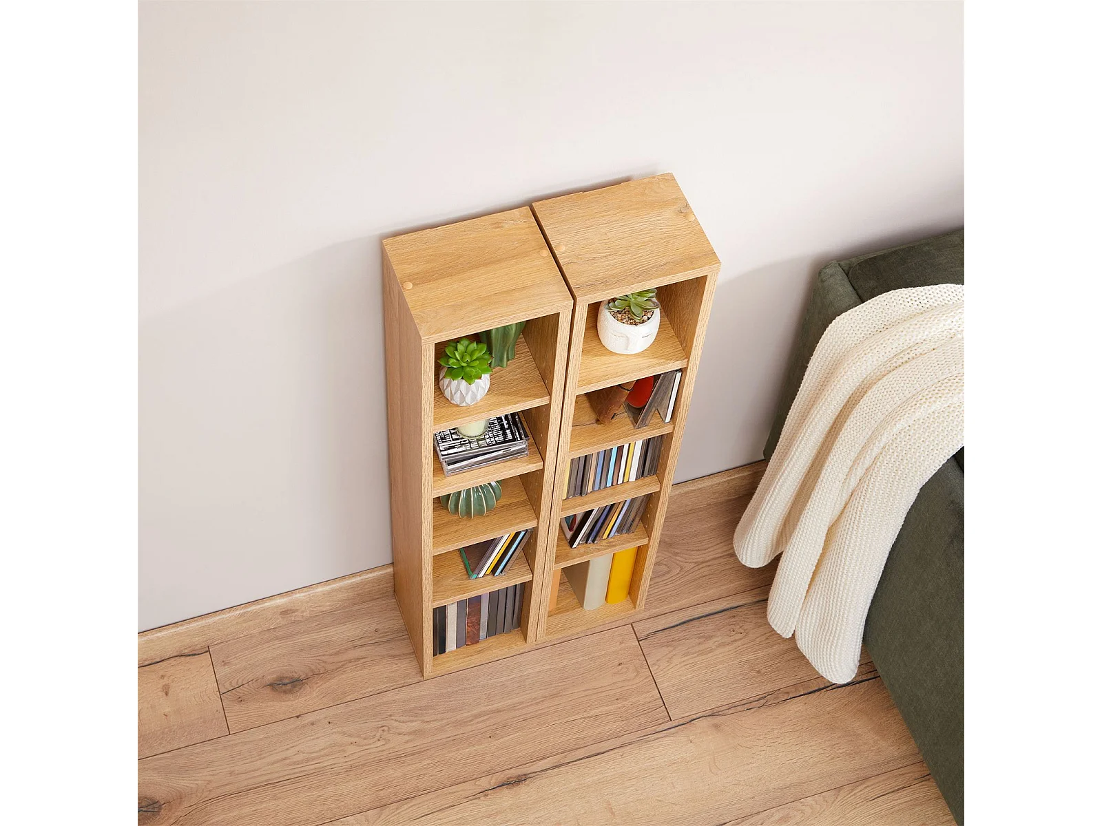 Etagères modulables MUSIQUE pour CD et DVD, lot de 2 meubles de rangement en colonne avec 10 compartiments, mélaminé chêne sauvage