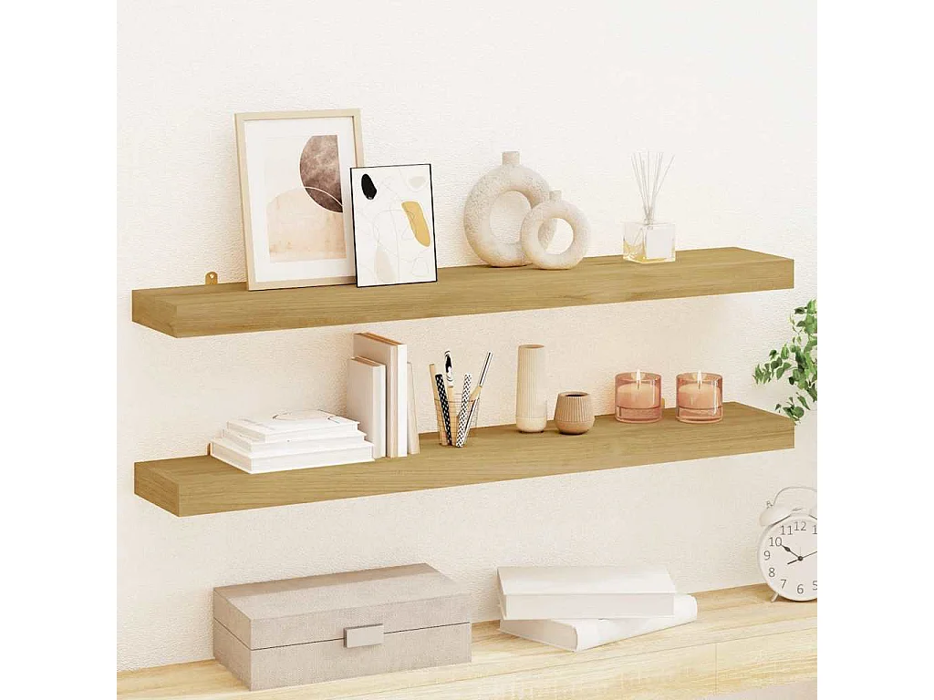 Étagères murales 2 pcs 90x15x4 cm bois de teck massif