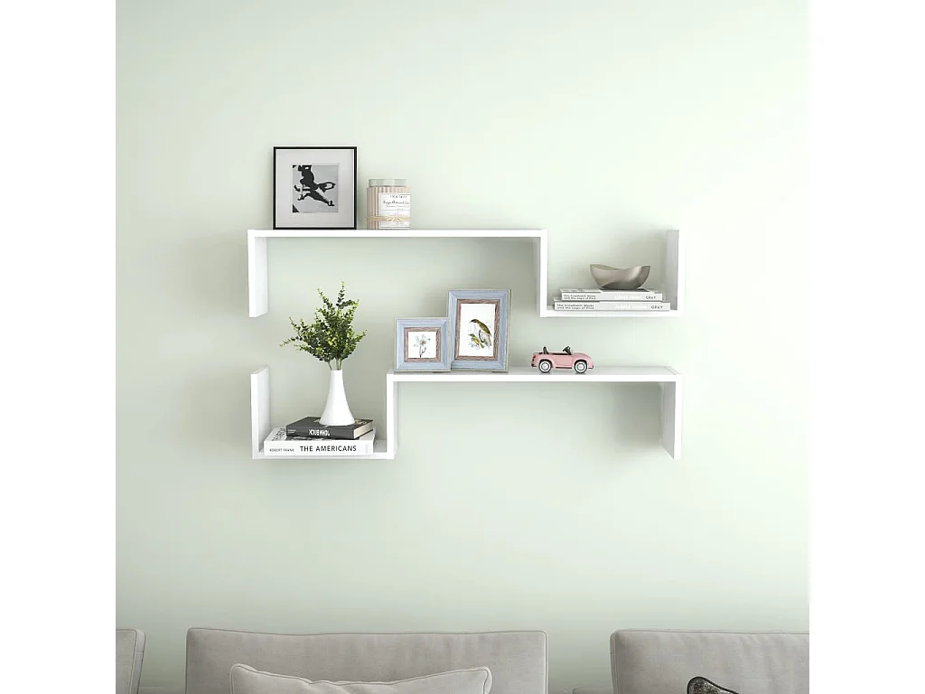 Étagères murales 2 pcs Blanc brillant 100x15x20