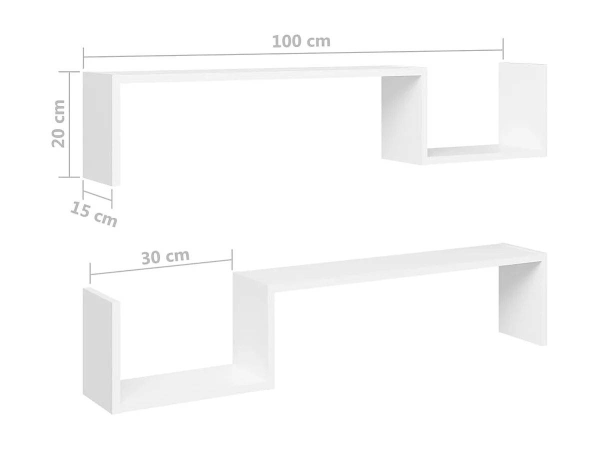 Lot de 2 étagères murales en bois Kolika L100xH20xP15 – Collection originale-Blanc