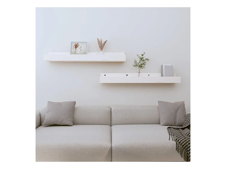 Ensemble 2 étagères flottantes en bois de sapin blanc 80x3,2cm - MELVA - DECOWOOD