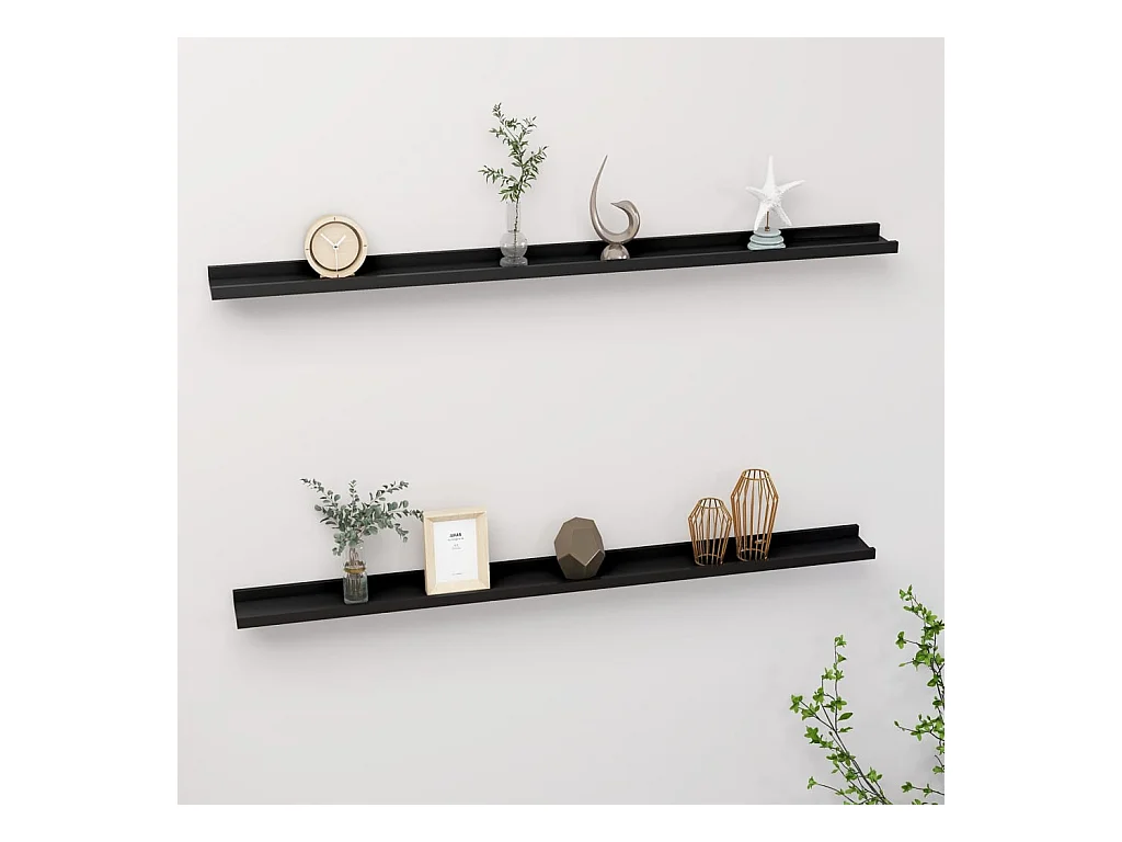 Étagères à rebord pour cadre photo 2 pcs Noir 60x9x3 MDF