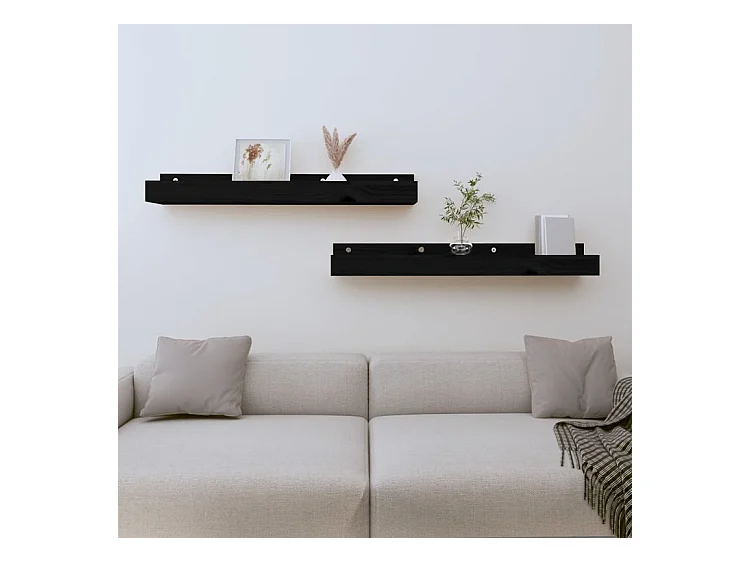 Étagères murales 2 pcs Noir 80x12x9 Bois de pin massif