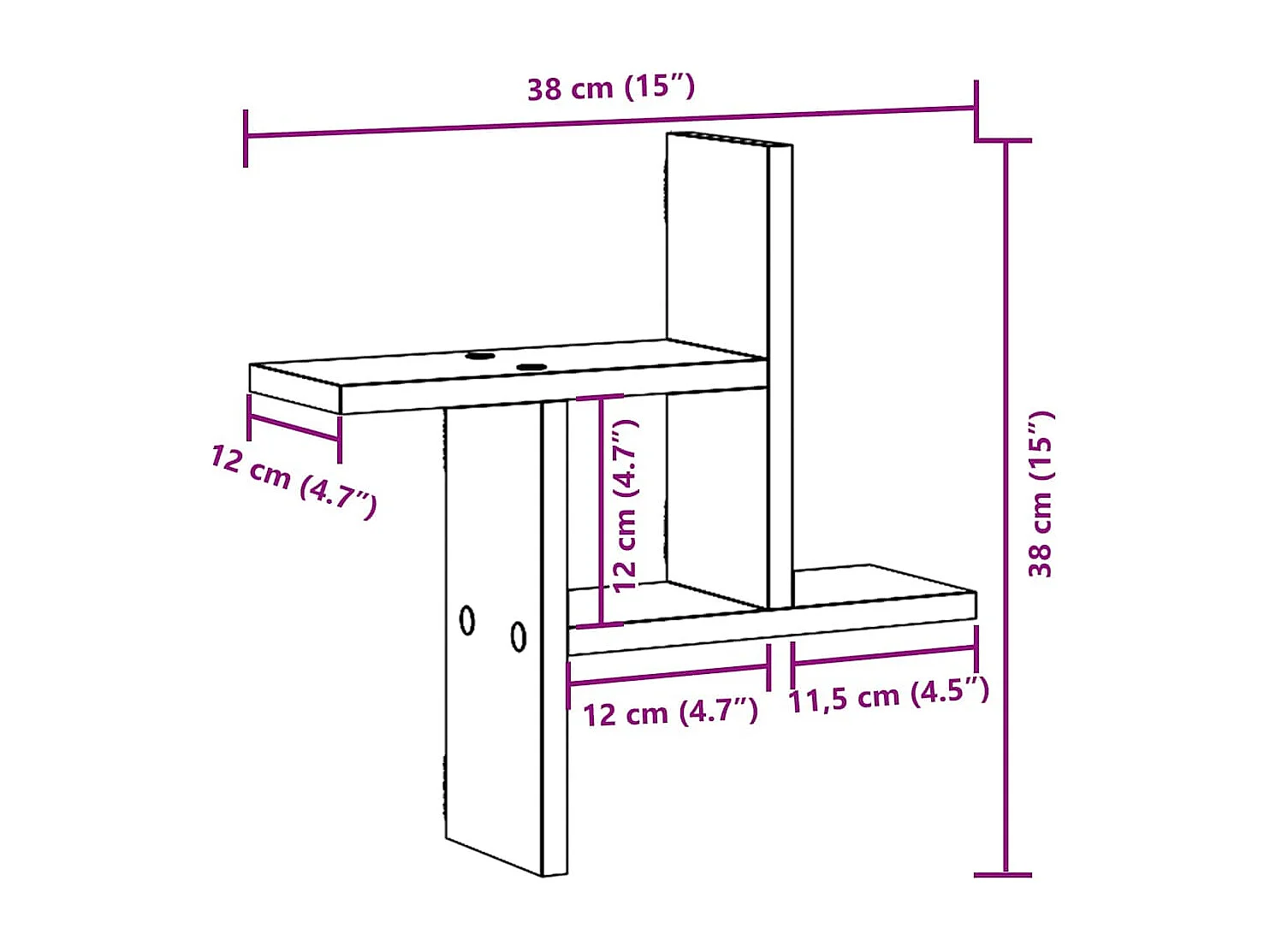 Étagères murales 2pcs chêne sonoma 38x12x38cm bois d'ingénierie