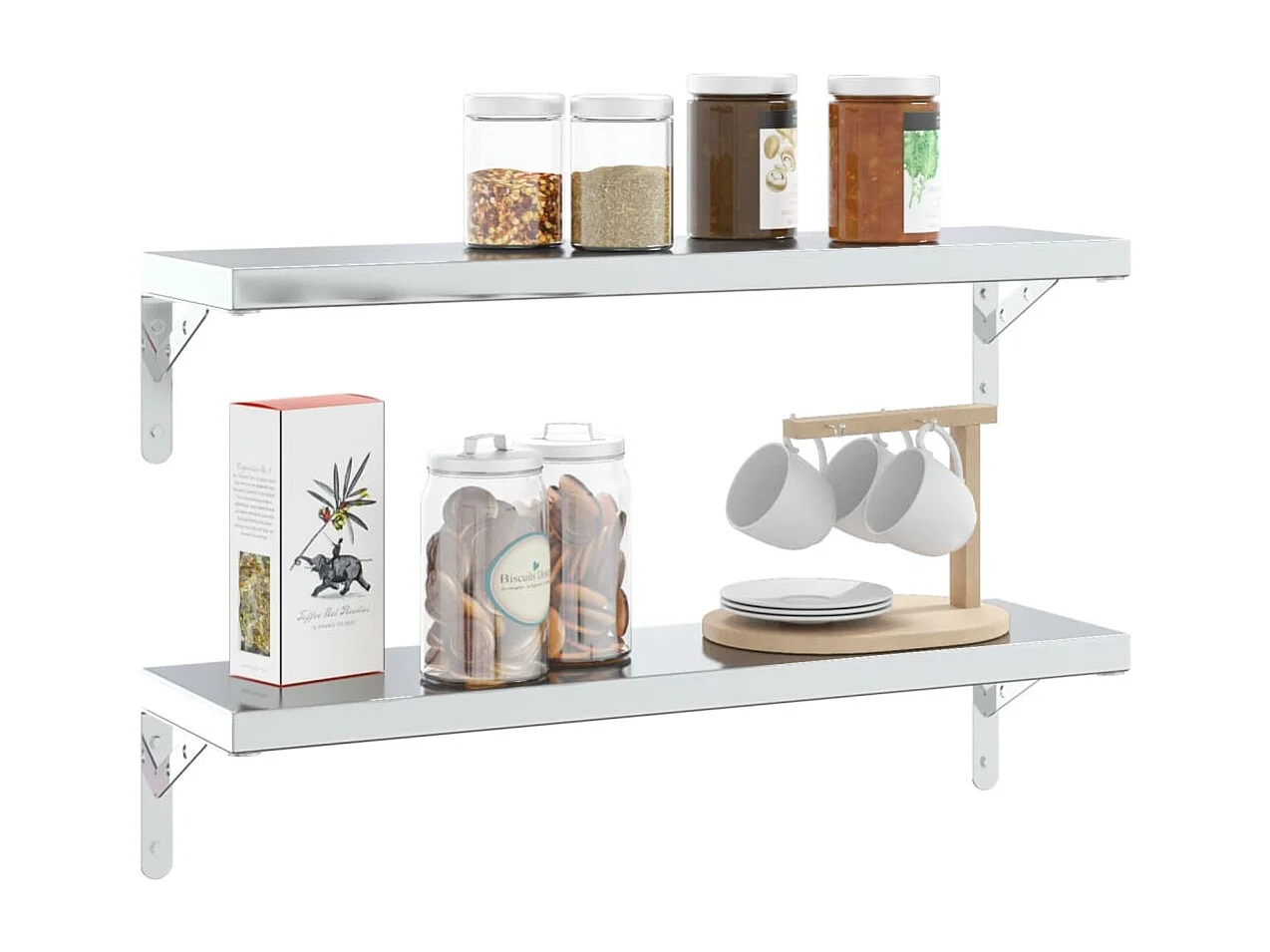 Étagère murale 2 niveaux 100x23,5x60cm argenté acier inoxydable FR858331