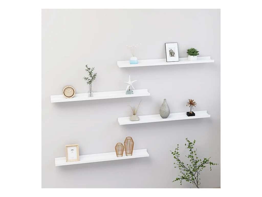 Étagères murales 4 pcs Blanc brillant 100x9x3