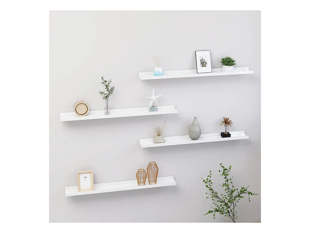 Étagères murales 4 pcs Blanc brillant 100x9x3